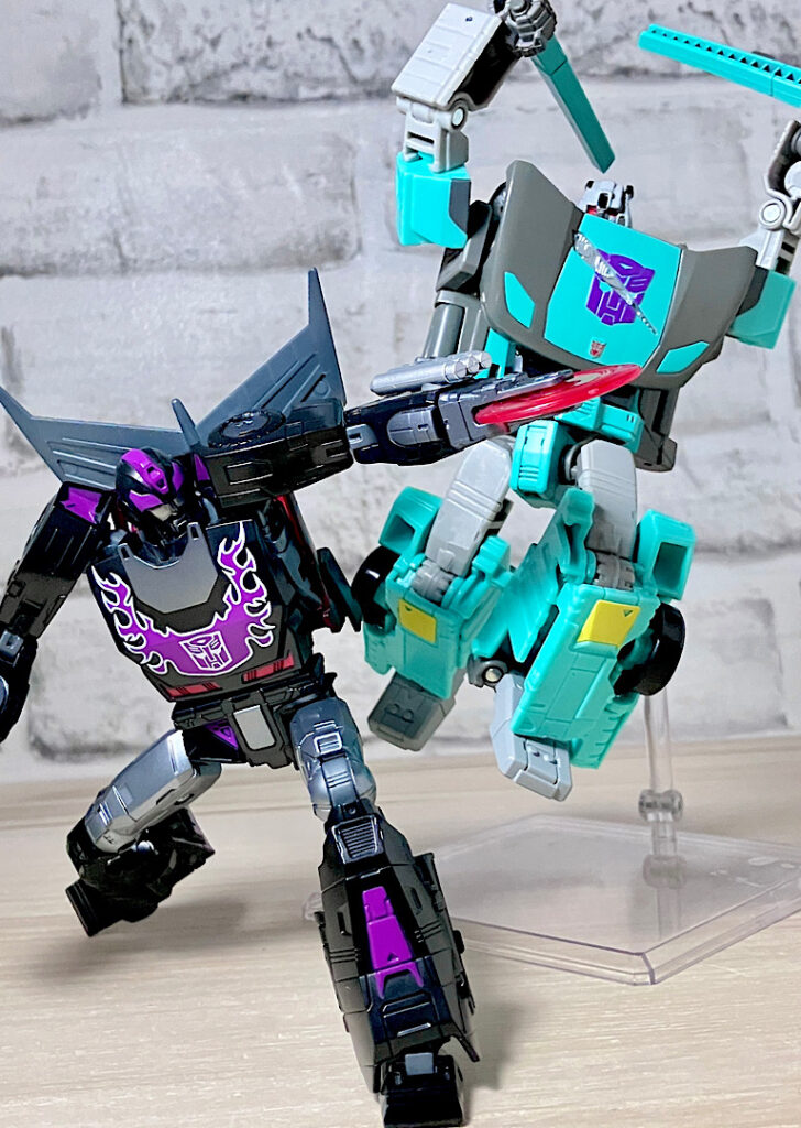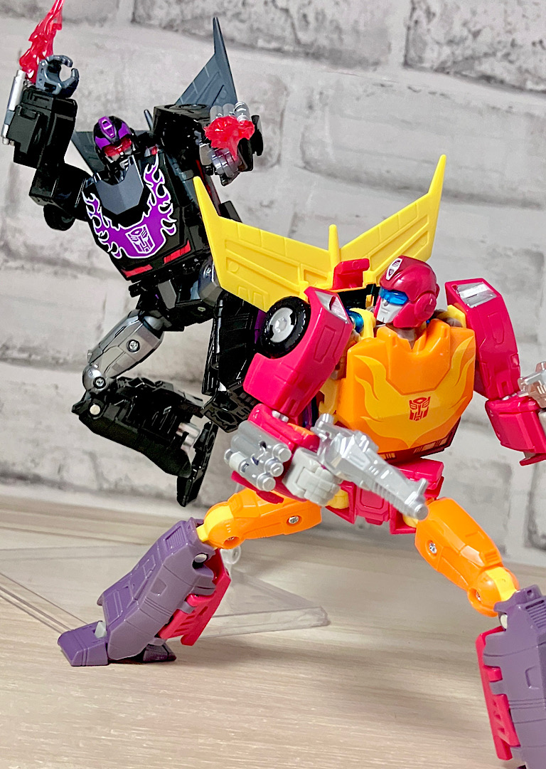 シャッタードグラス対決!悪のオートボット・ロディマスと、悪のオートボットを見限って正義のディセプティコンに転向したサイドスワイプの対決…ってもうわけわからんw!!