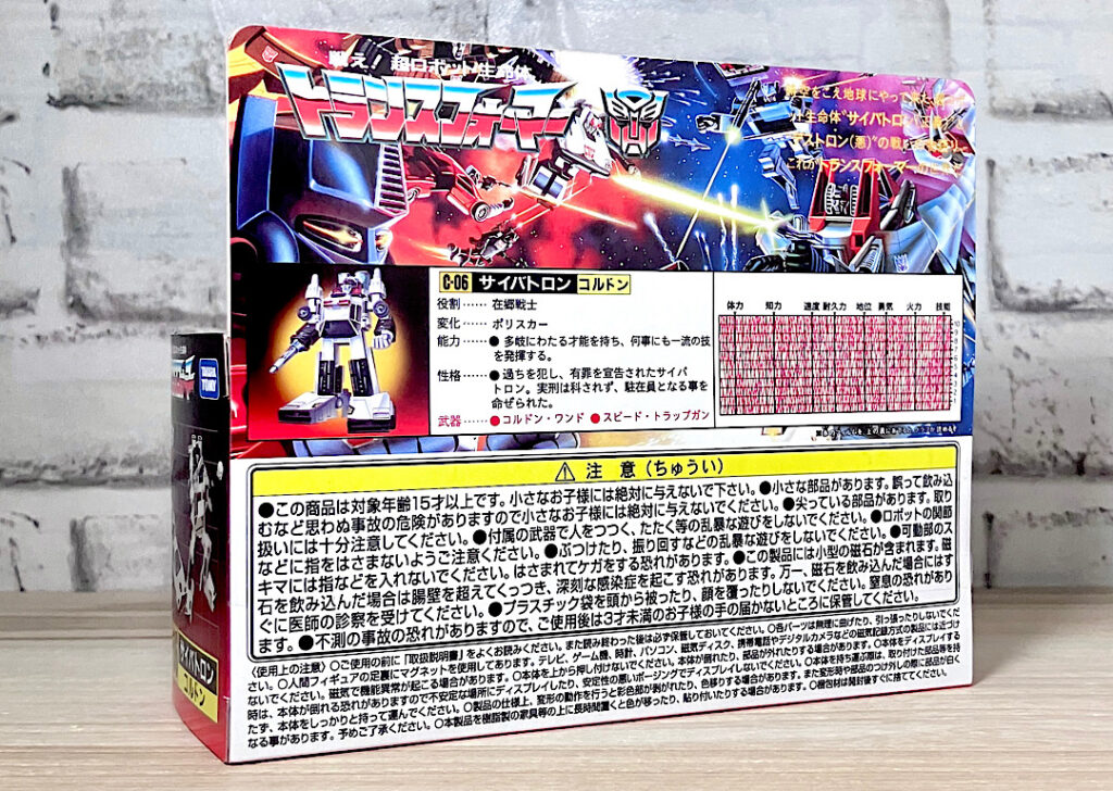 【パッケージ】「あの時代に存在したかもしれない仮想復刻版」と銘打ったミッシングリンクシリーズ。パッケージはG1当時品をオマージュした超レトロ仕様です。ロゴや基本デザインはもちろんのこと、パッケージ裏のイメージイラストから赤フィルムで見るスペックチャートまで、徹底的なこだわりぶりです。