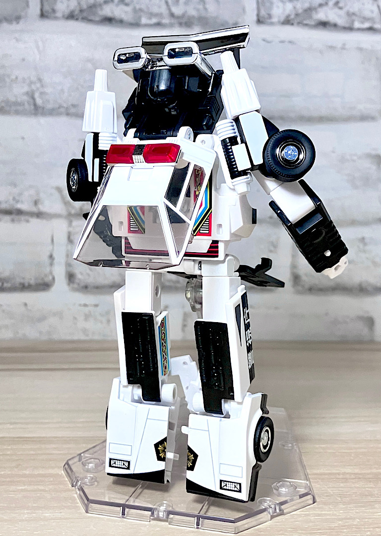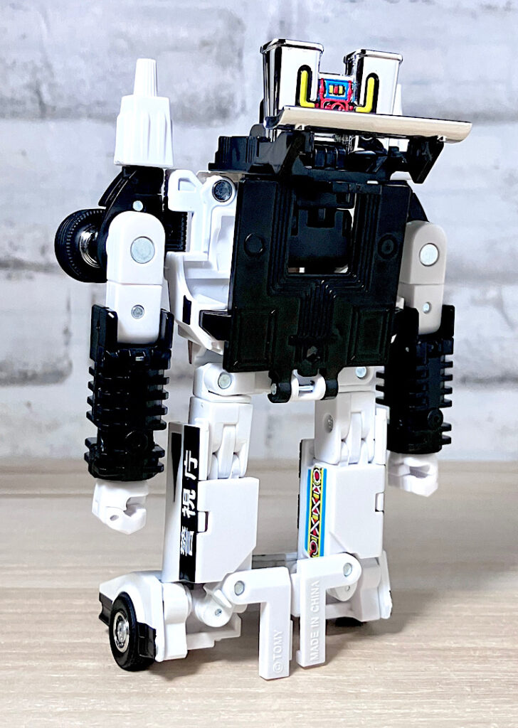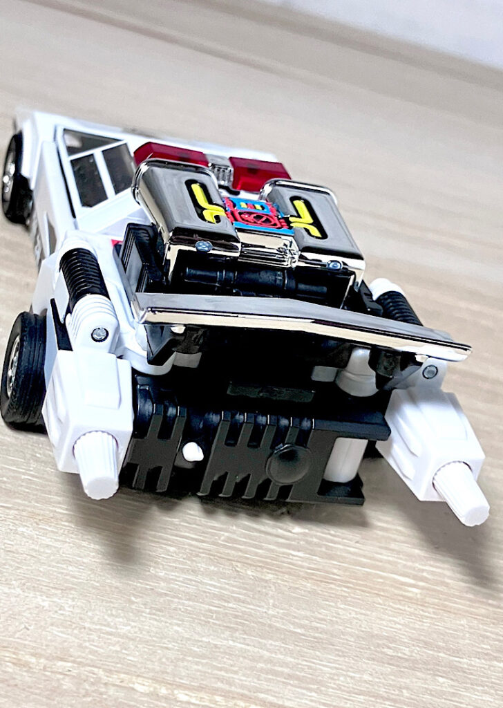 ダイキャスト+クリアパーツによりカーモードの質感に抜かりはありません。サンストリーカーとの違いはカラーリングと、ルーフのパトライト。