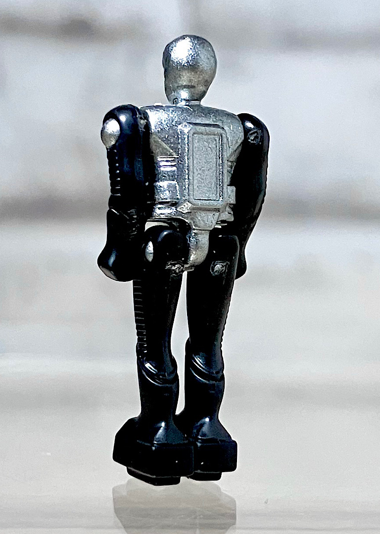 【人間/ポリスオフィサーフィギュア】コルドンにも往年のダイアクロン隊員を流用したフィギュアが付属。白いスーツを着た「人間/ポリスオフィサーフィギュア」です。四肢がちゃんと独立して動く極小フィギュアで、足裏にはマグネットも付いています。