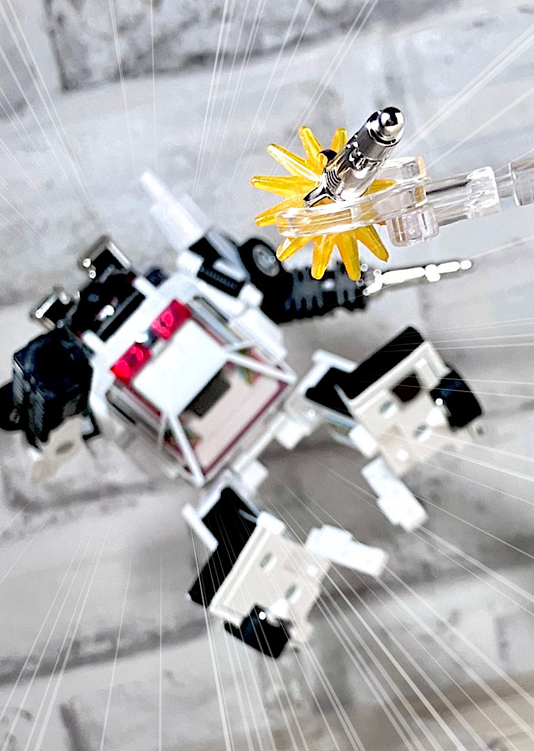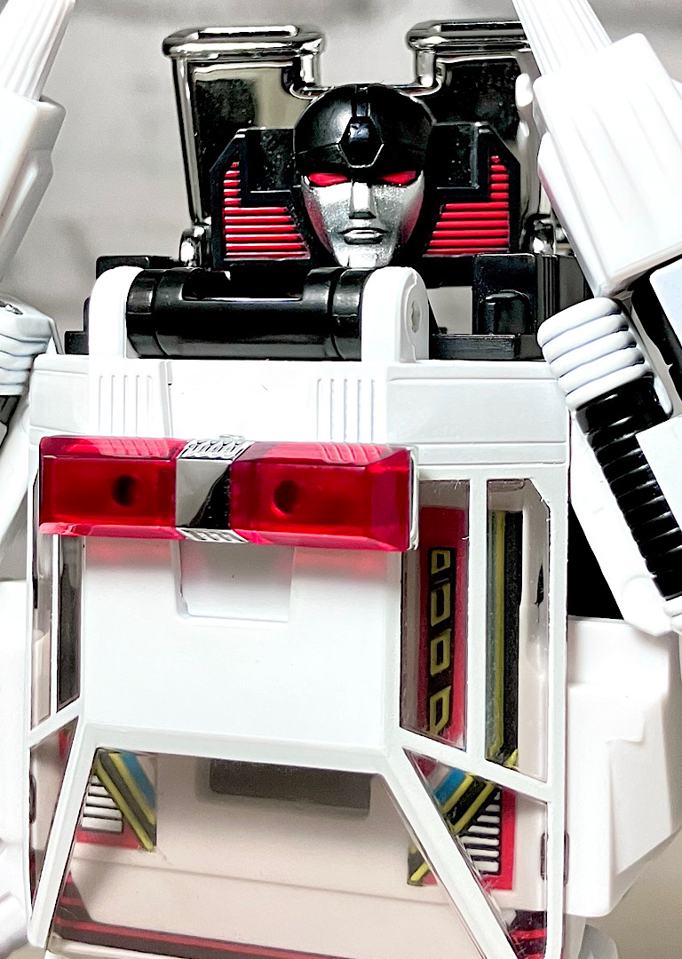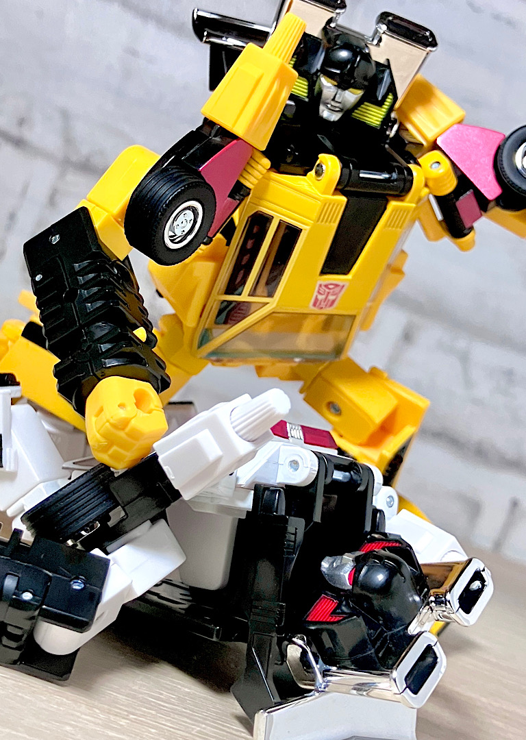 【ロボットモード】ロボットとしては体型バランスが独特なパワードスーツ系のサンストリーカー型。昭和レトロSFという感じで、ヒロイックさはあまり追求されていない感じ。