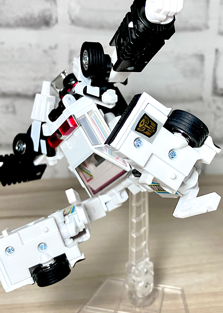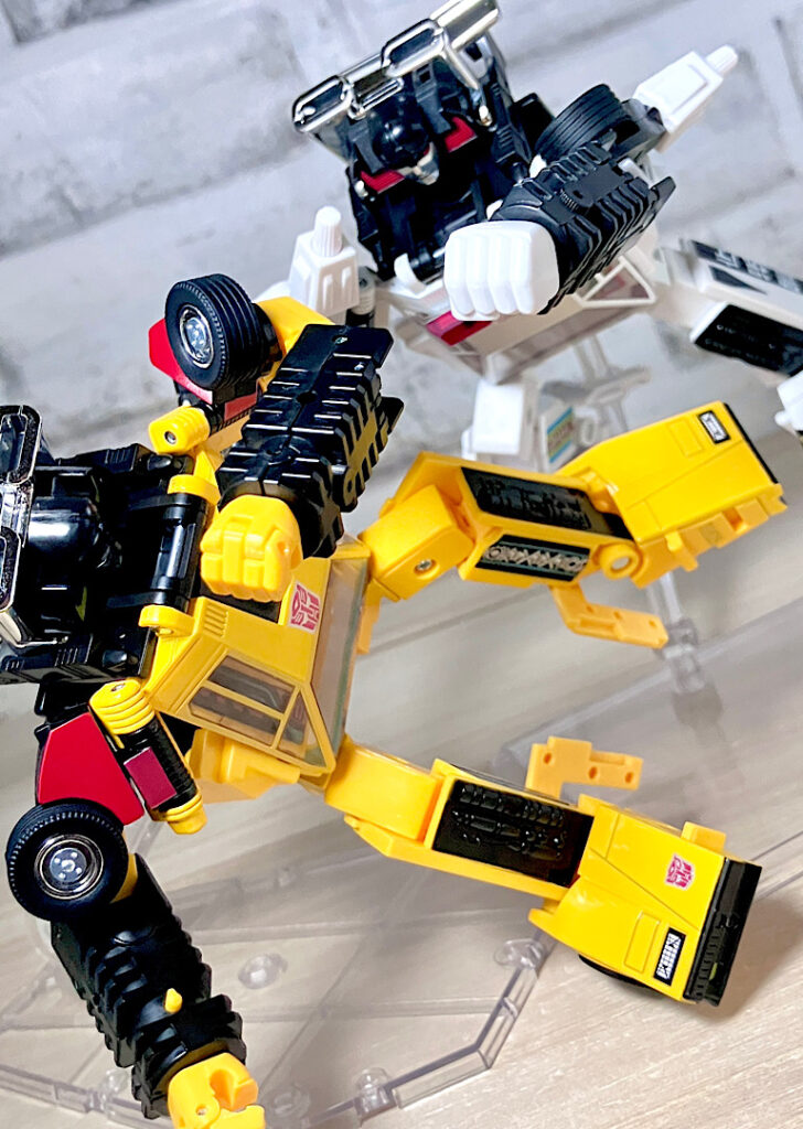【可動】見た目は当時のカーロボットそのままに、近年のTFフィギュアさながらの可動ポイントが追加されたのがミッシングリンク。コルドンの場合、体型が独特すぎて動かすとさらにボディバランスが崩れてしまうのですが、そこも含めてまさに脳がバグってくる瞬間です。