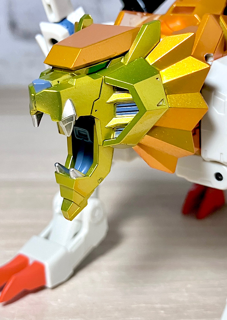 タテガミ延長パーツをライオンヘッドに組み合わせ。ここはアニメとは違いますね(アニメだとヘッドの中から出てくる感じ)。