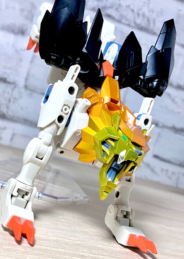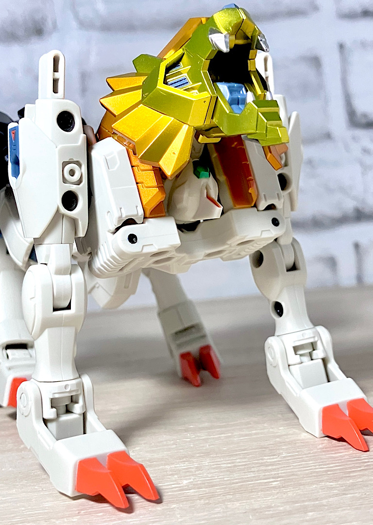 【変形】ロボの四肢がそのままライオンの四肢になるオーソドックスなパーツ配置で、TFに慣れていれば簡単。