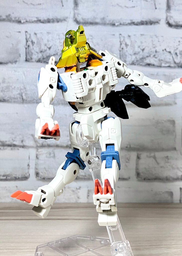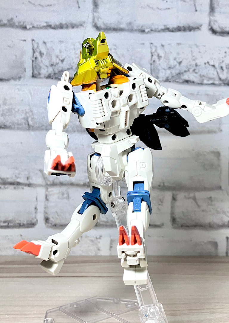 上半身のアクションはさらに窮屈になります。背中のガジェットガオーは外れて落下しやすいので注意しましょう。