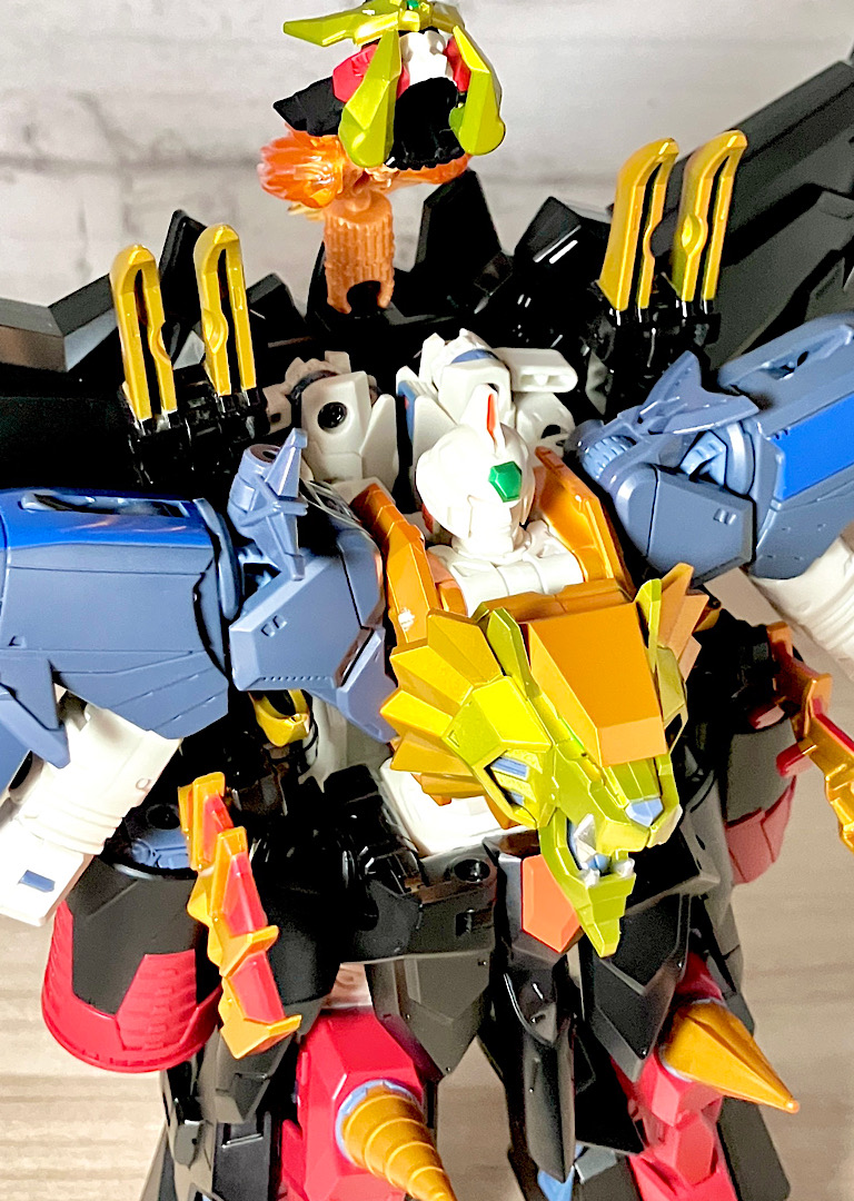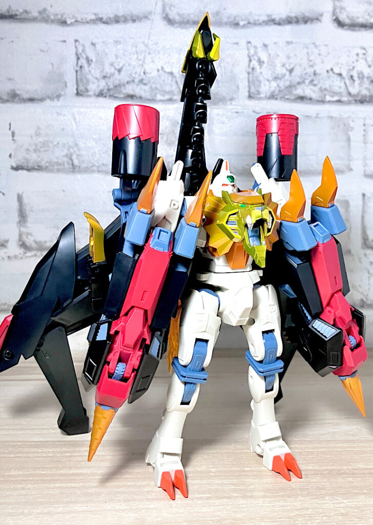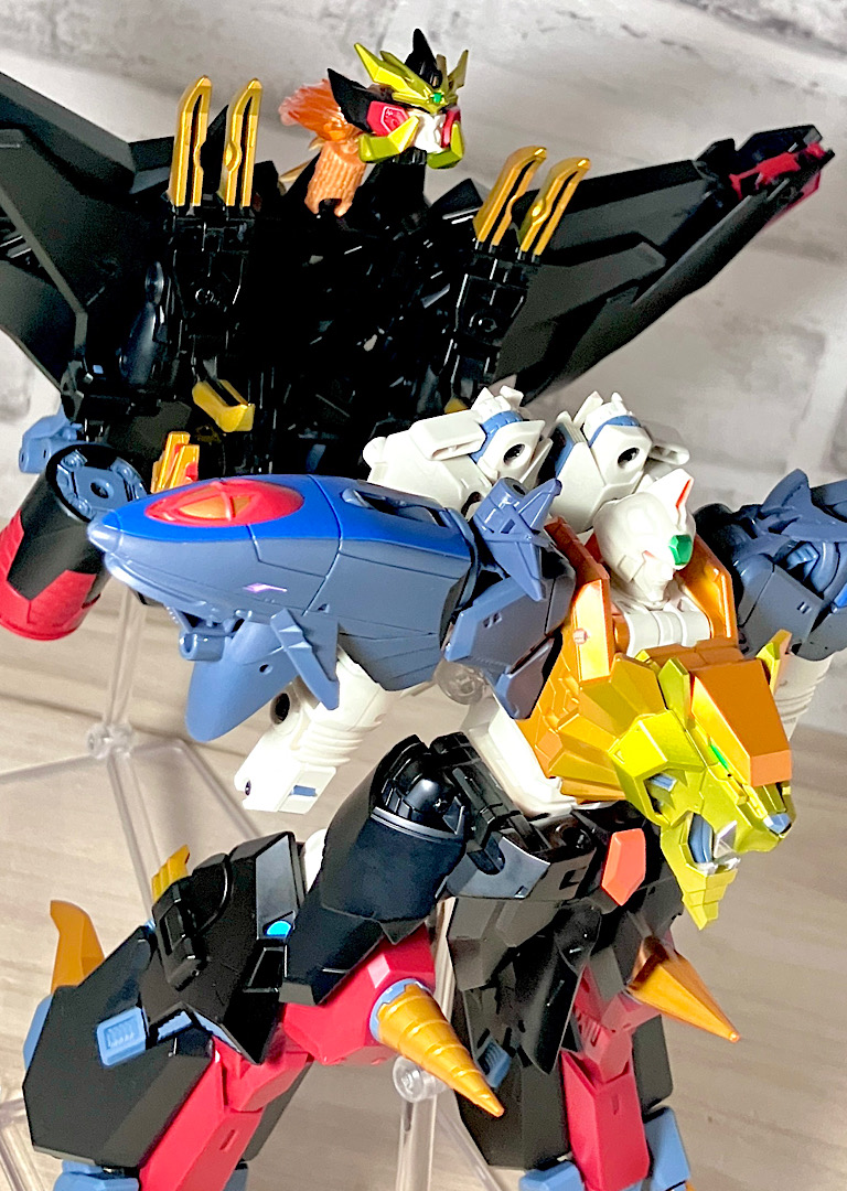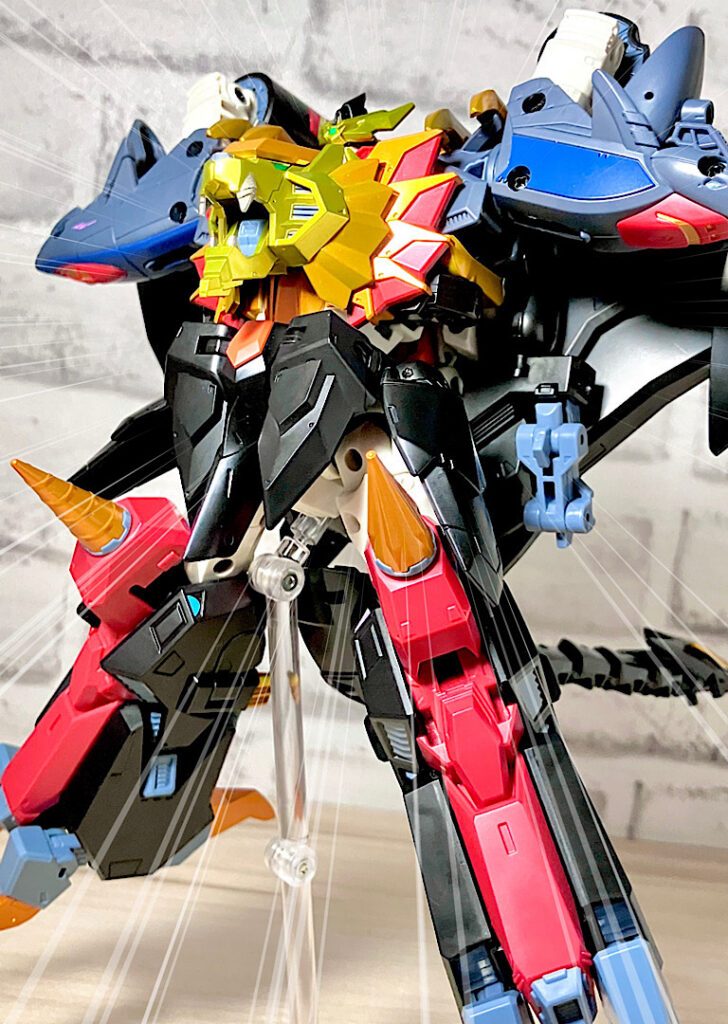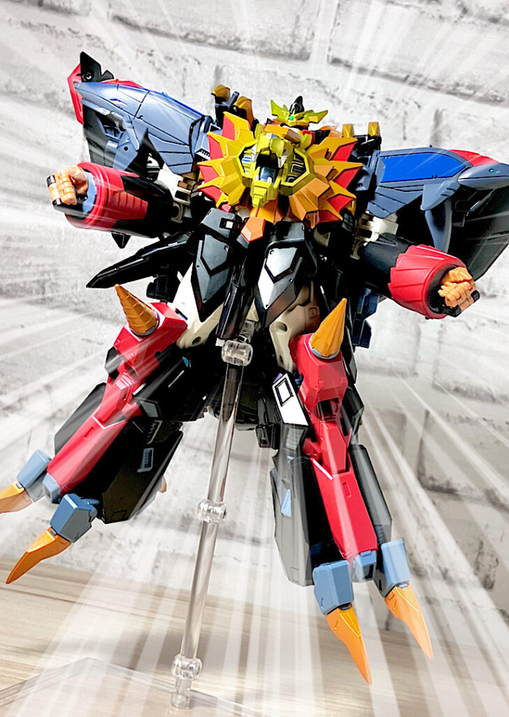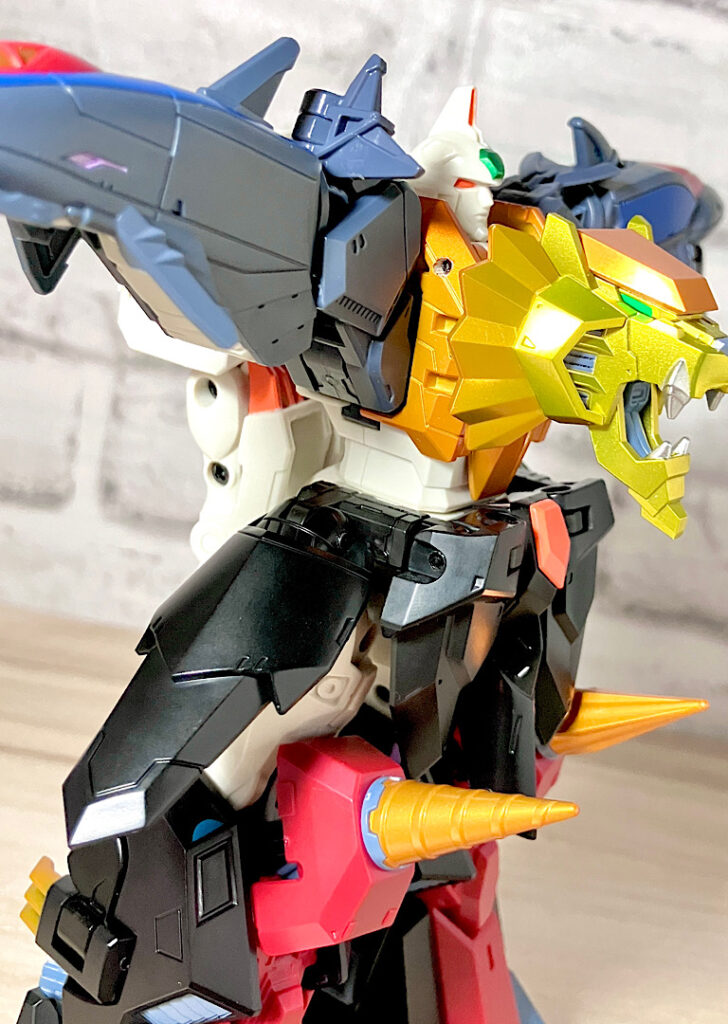 さらに全てのジェネシックマシンを装着したモードがこちら。理屈上ボリュームだけならガオガイガーと同じ!なのにガオガイガーっぽさは感じない完全別モードなのが上手いデザインですね。