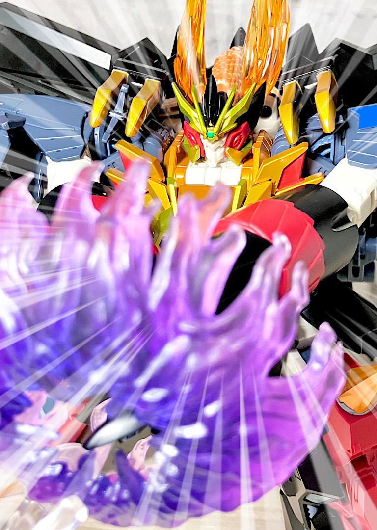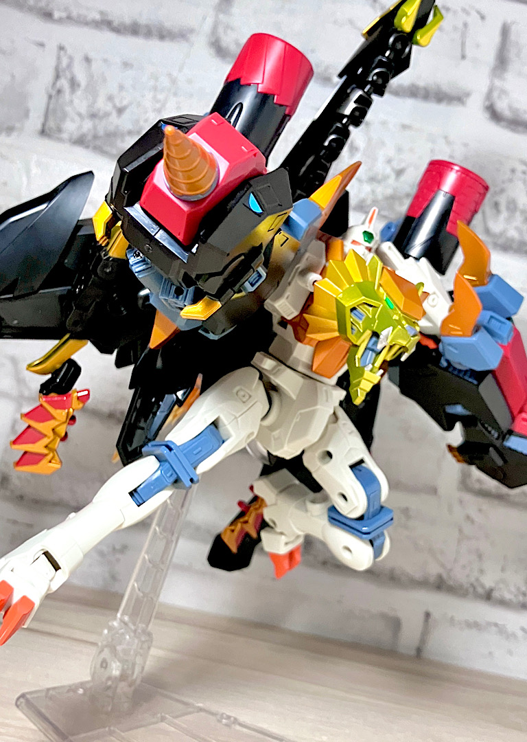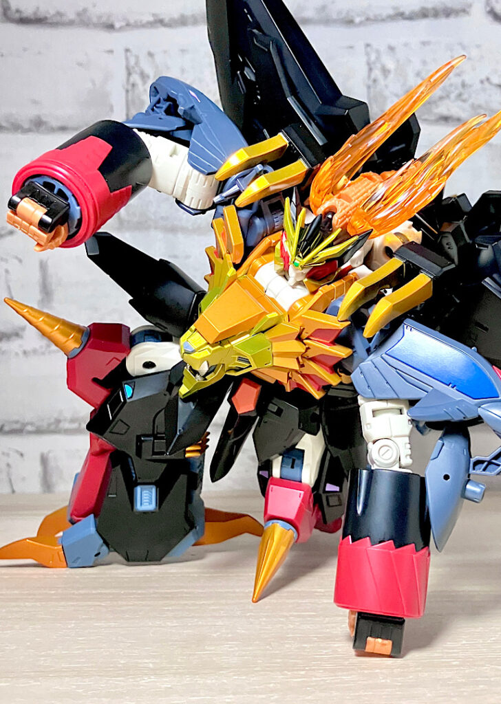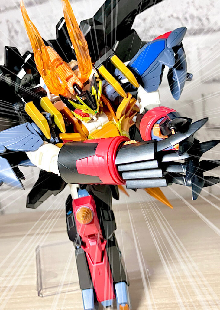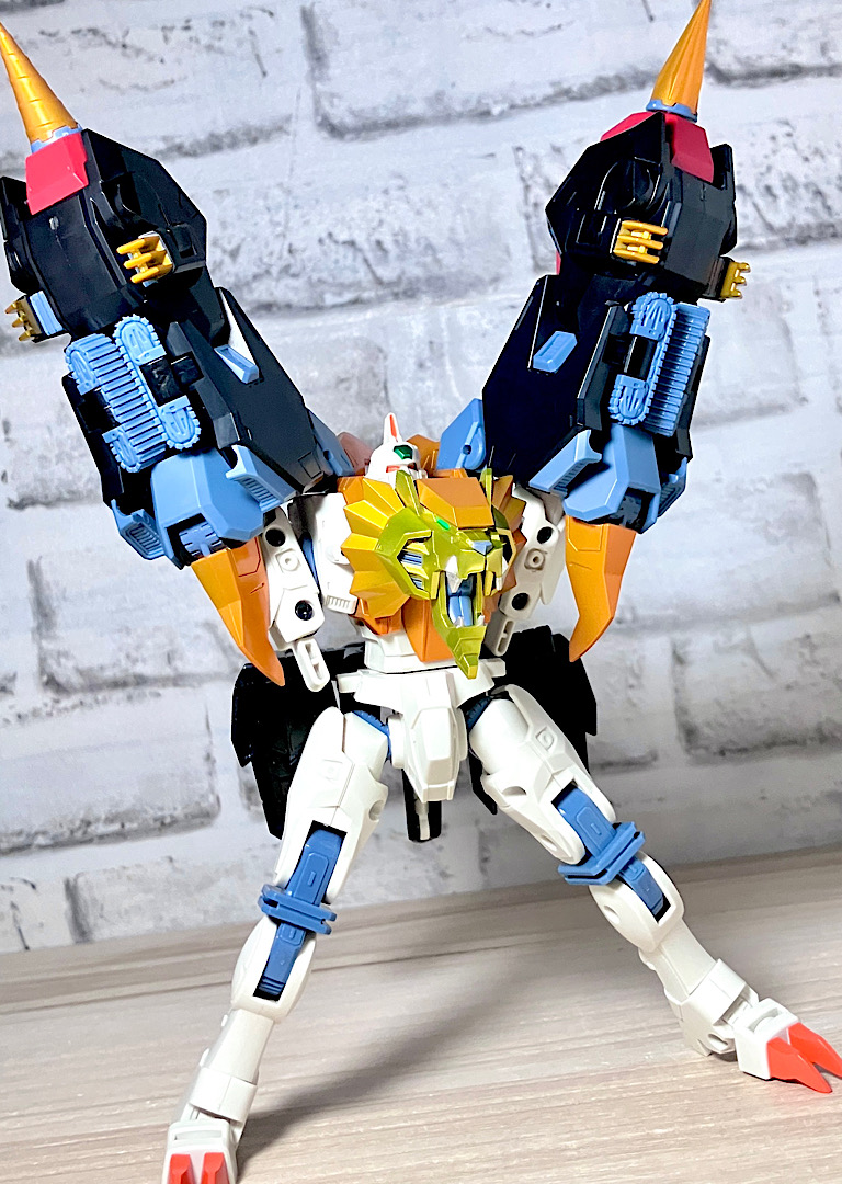 さらに全てのジェネシックマシンを装着したモードがこちら。理屈上ボリュームだけならガオガイガーと同じ!なのにガオガイガーっぽさは感じない完全別モードなのが上手いデザインですね。