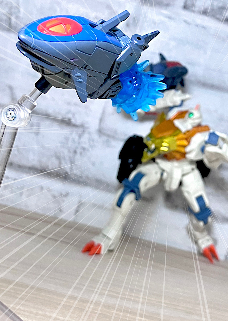 【ブロウクンガオー・プロテクトガオー】無印だとライナーガオーにあたるサメ・イルカ型メカ。ちゃんと新幹線っぽさも残っているのが芸コマですよね。
