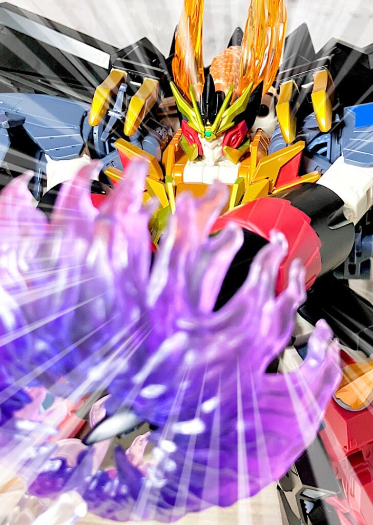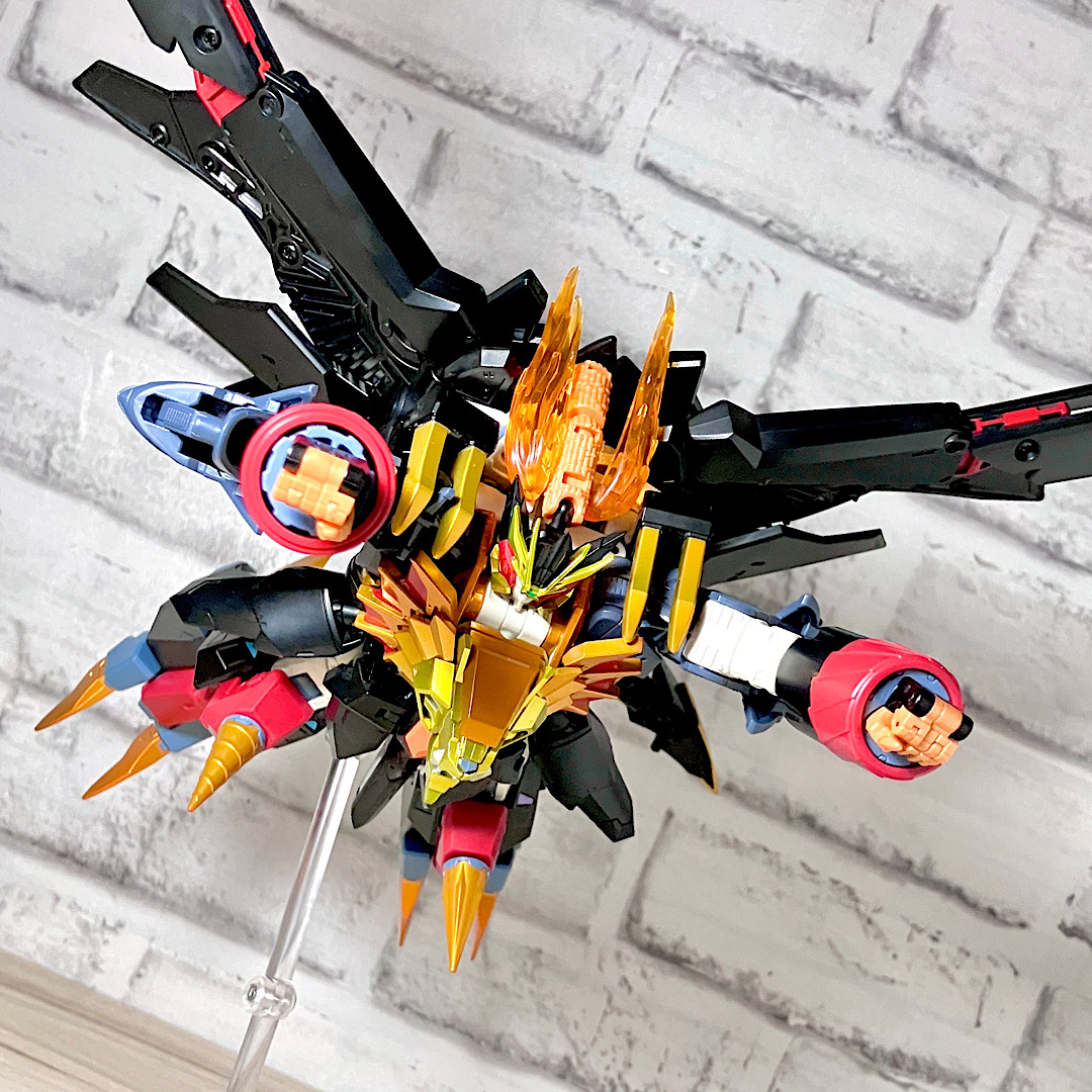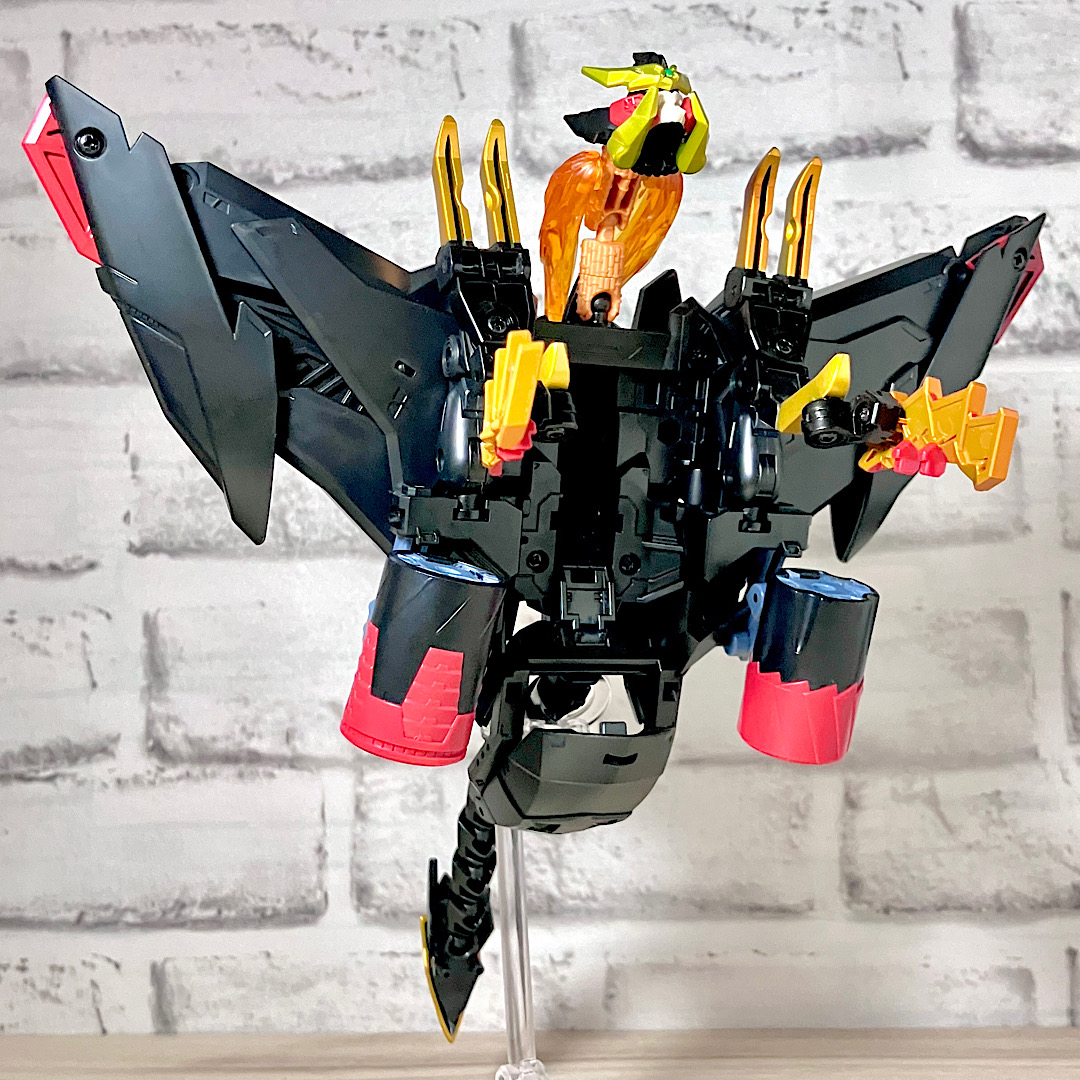 ガジェットガオーの羽を広げればガジェットフェザー展開。技というか機動性アップのギミックです。目のような禍々しい模様の造形も素晴らしい!