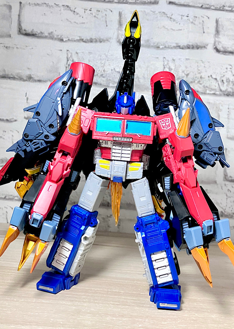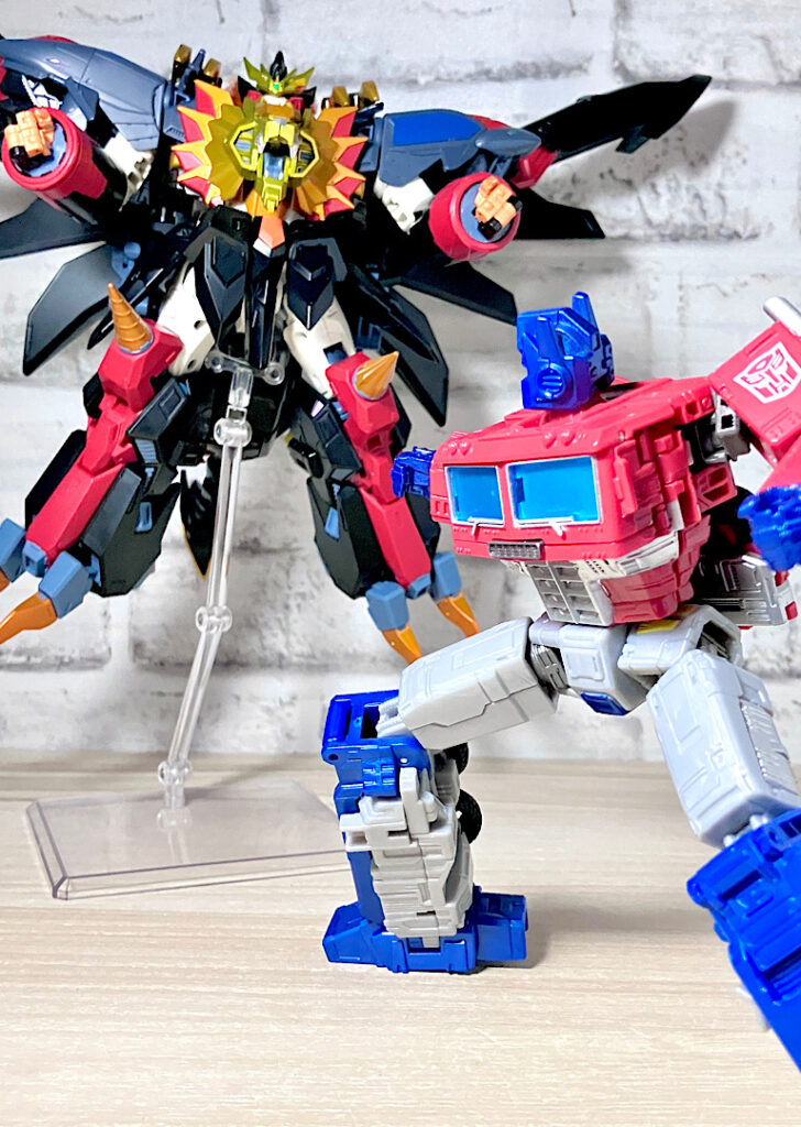 ちなみにサイズ的な話をすると、もちろんボリューム感は全く異なりますが、TFのボイジャークラスくらいのスケール。細かいディテールを表現するには小さいですが、大人が手にとって遊びやすいサイズです。