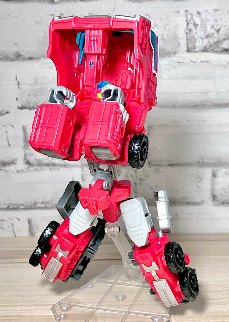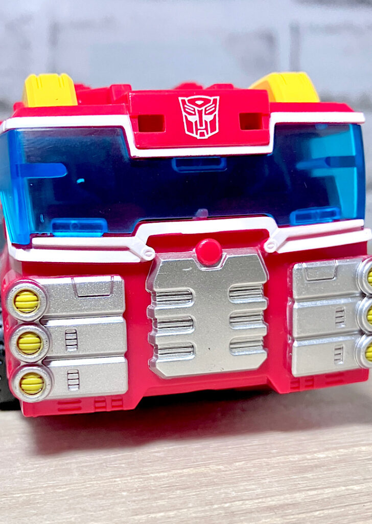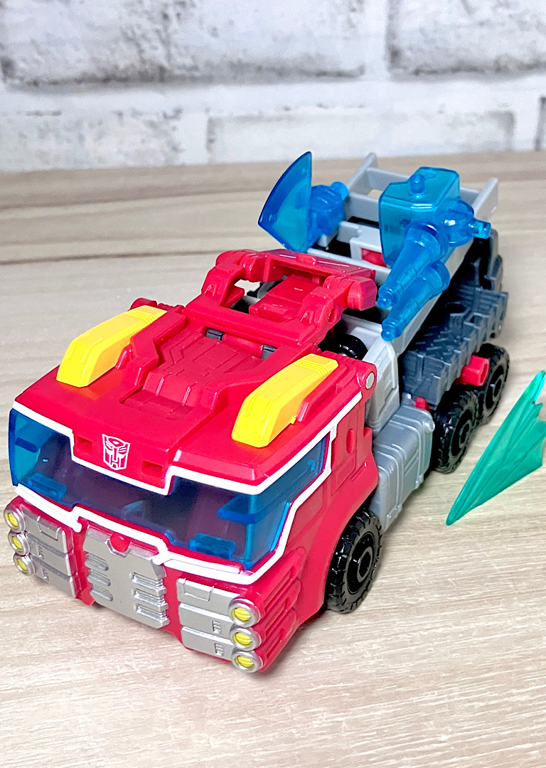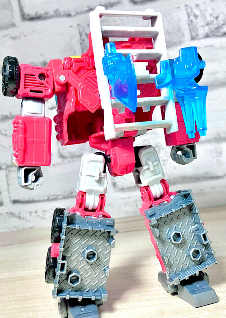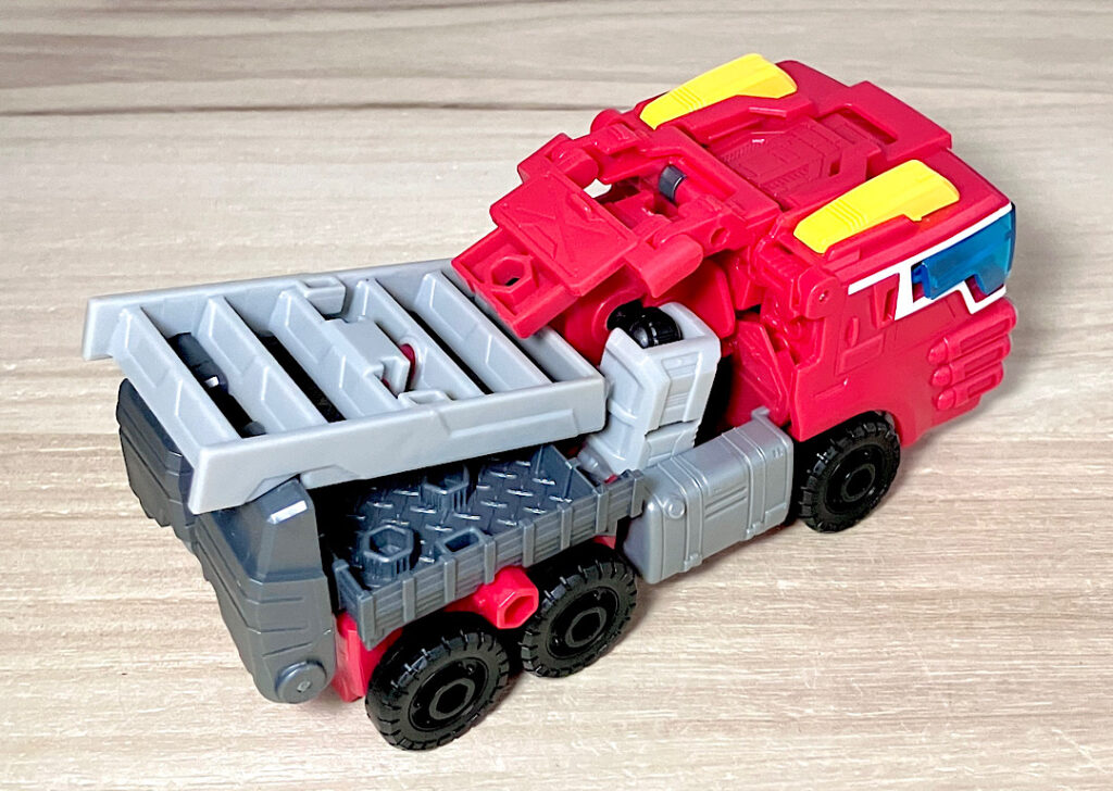【ビークルモード】消防車に変形。極端にデフォルメされたキッズトイ風味が特徴です。元のバルクヘッドのビークルの形状をうまい具合に活用していてさすが!