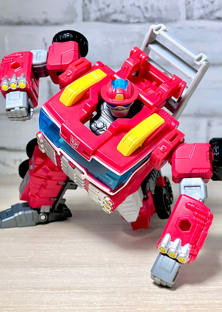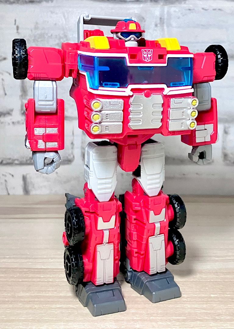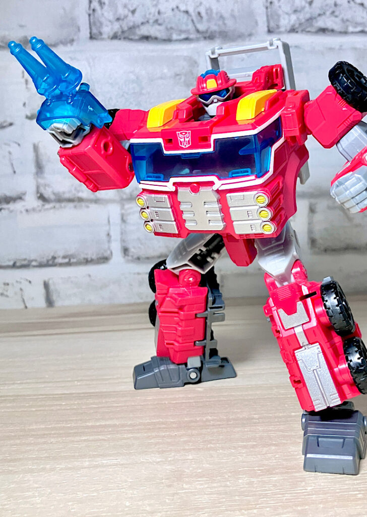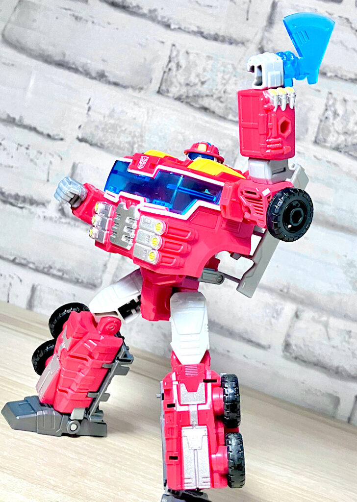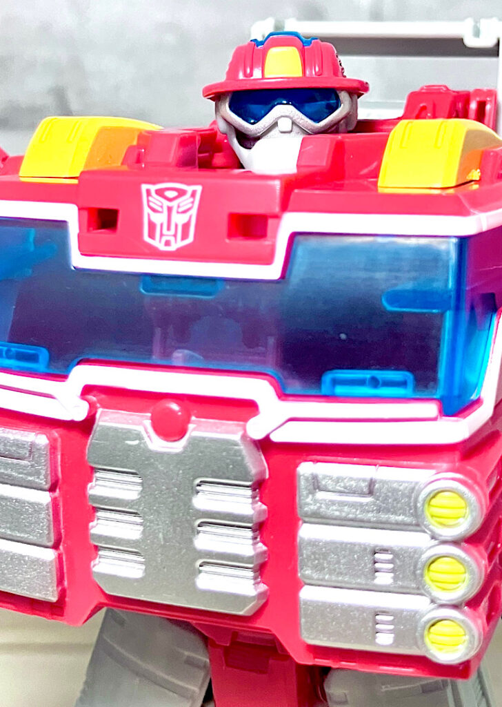 【アップ】頭部もほぼアニメまんま。他のキャラと馴染まなそうな心配もありましたが、もともとごちゃ混ぜなTFの世界ではそんなことありませんでした。消防士モチーフがわかりやすくて良し。