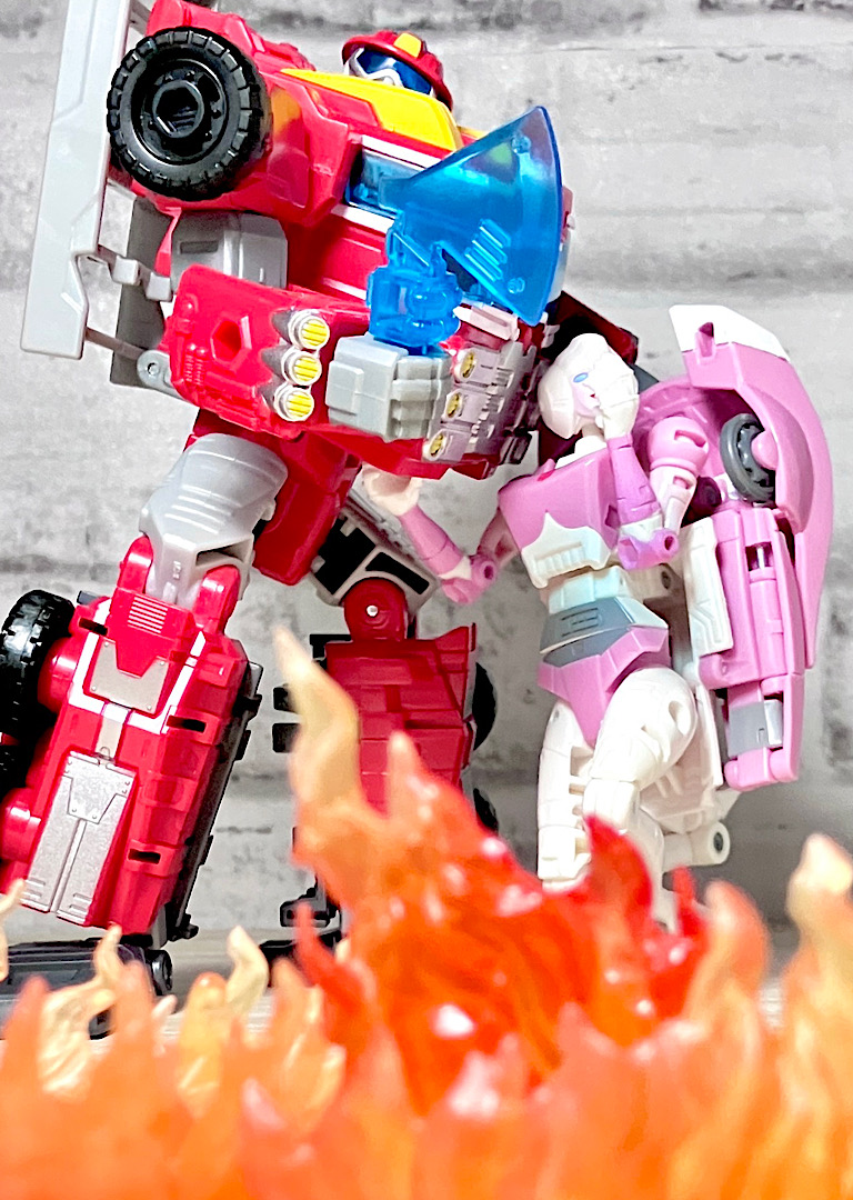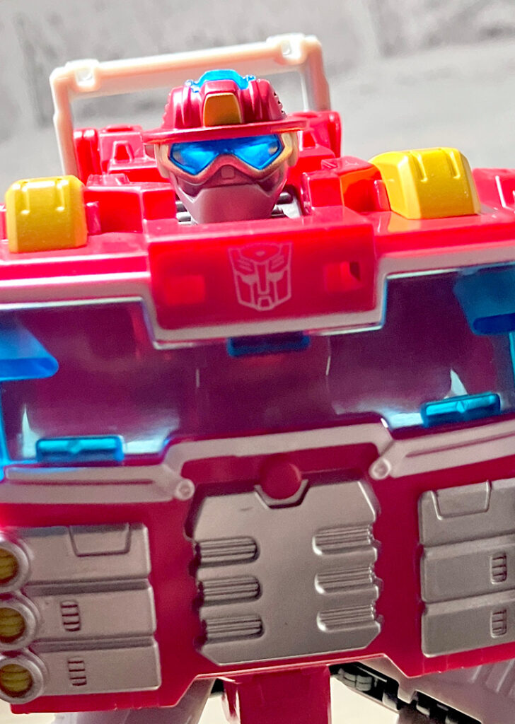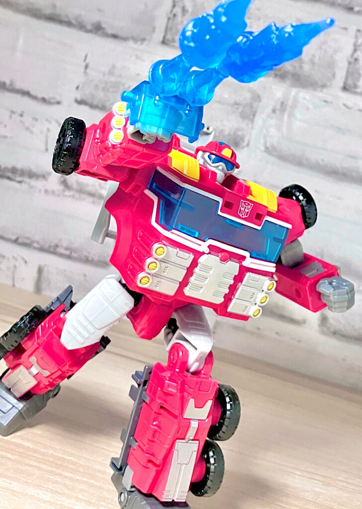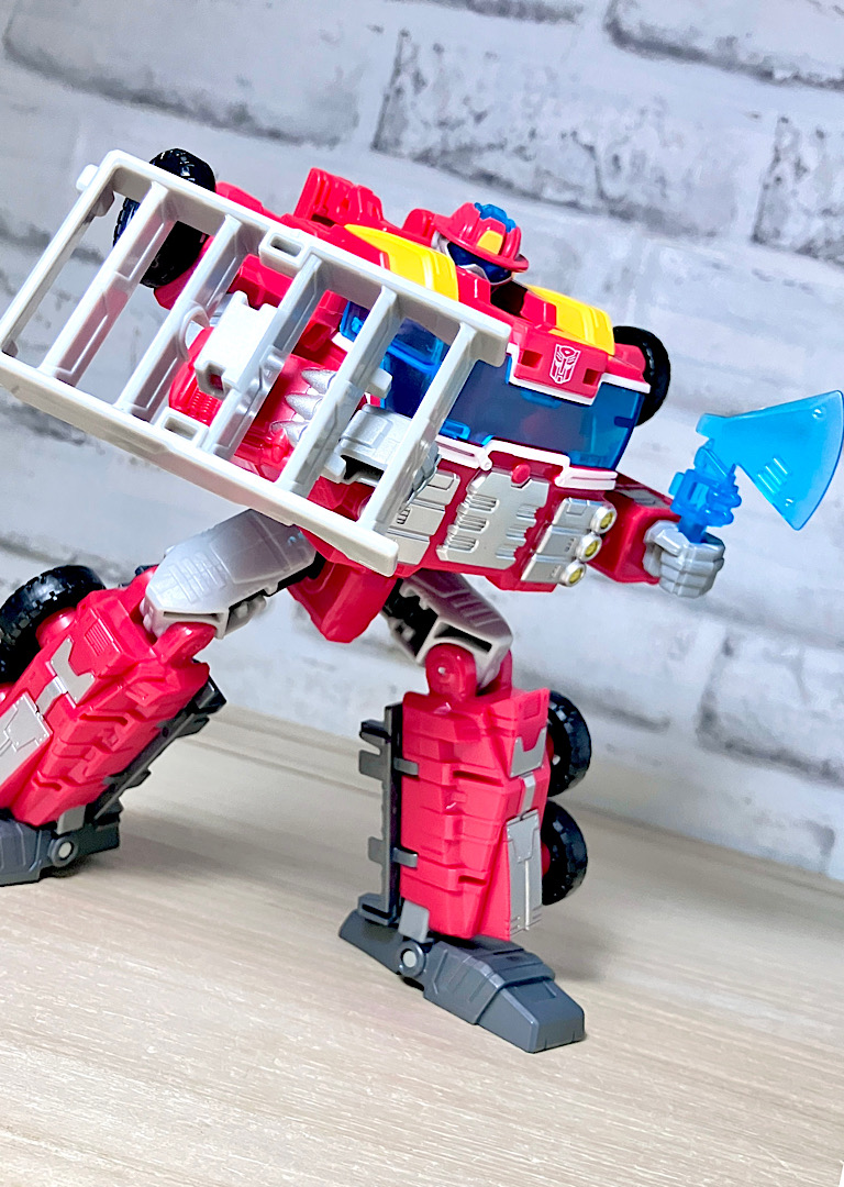 【アップ】頭部もほぼアニメまんま。他のキャラと馴染まなそうな心配もありましたが、もともとごちゃ混ぜなTFの世界ではそんなことありませんでした。消防士モチーフがわかりやすくて良し。