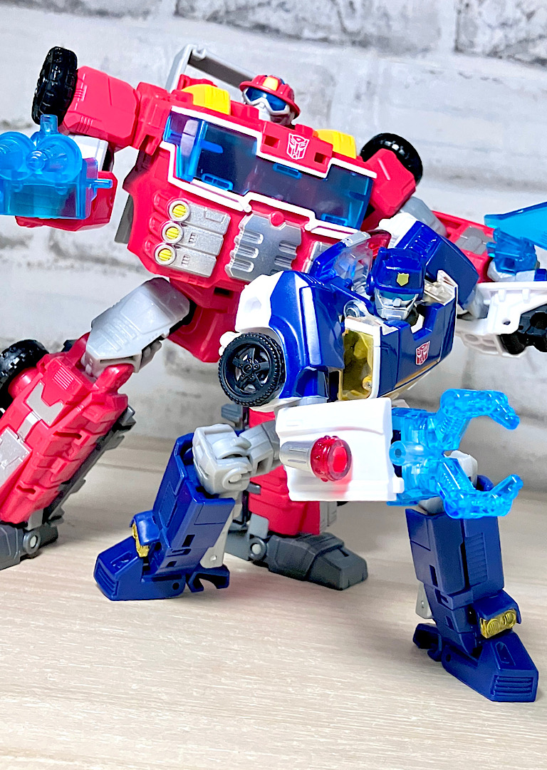 レガシーのチェイスと。どちらも元のデザインをリスペクトした素晴らしいアレンジです。レスキューボッツの面々はオリジナルキャラが多いので、是非まずはメインの4人をそろえてほしいな。