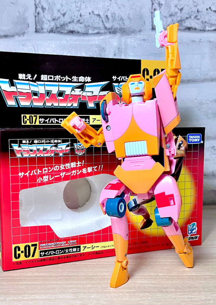 【ロボットモード】まさに写真で見慣れた幻のG1アーシー!2010組の絶妙に野暮ったくて人を不安にさせる独特のデザインがそのまま再現されました。それにしても女性の体型の表現の仕方が面白い!