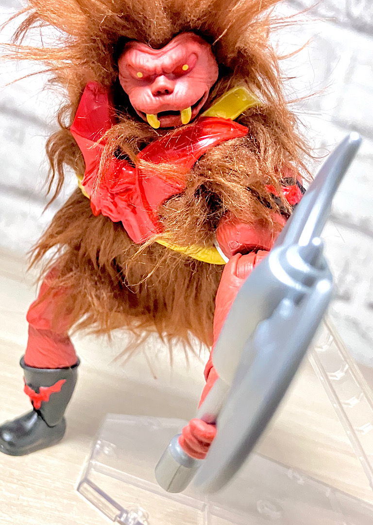 ビンテージ版は1985年リリース。一発ネタのおもしろギミックがノリにノッていたころのフィギュアで、グリズラーのギミックはズバリ、フェイクファーで覆われていること。おそらくですがファーを使うというのが先にあってそこから逆算デザインされたんじゃないでしょうか。これは当時もインパクトがあったでしょうね。