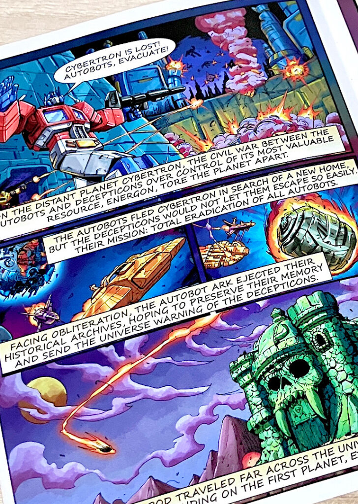 コミックもちゃんと付いています。商品に合わせた内容で、MOTUのコミックなのにオプティマスたちが出てきて脳がバグってきますw