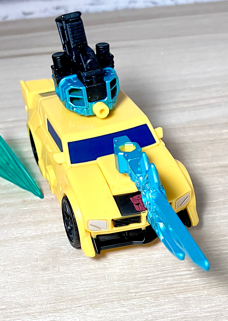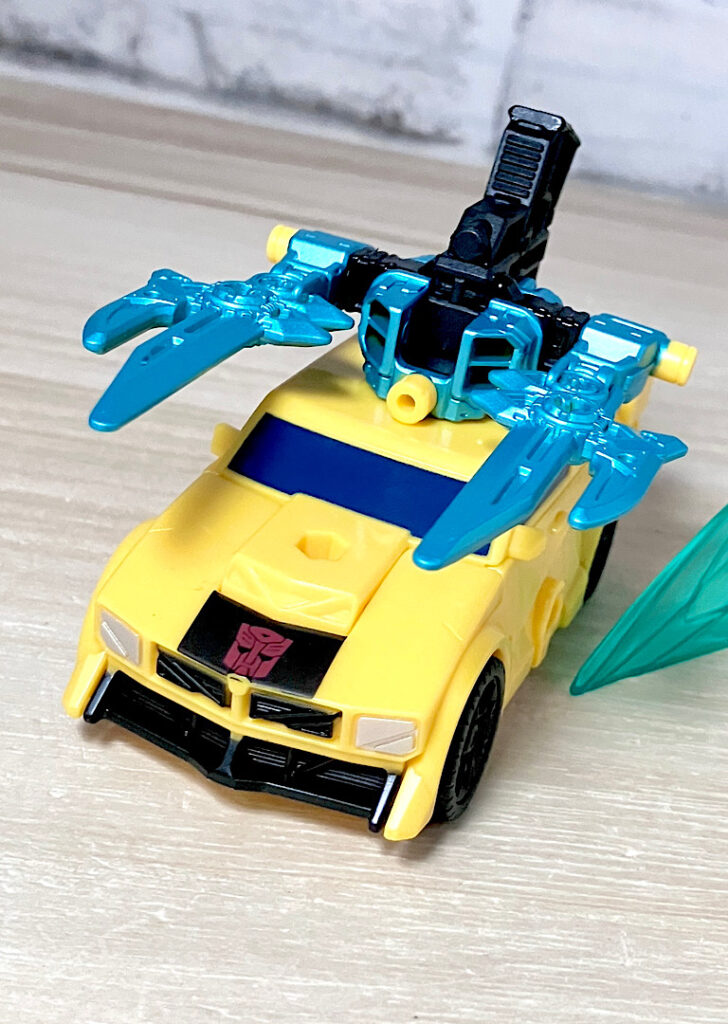 【ビークルモード】ビーらしい黄色いマッスルカーに変形。ロボと同じくコロンとした体積大きめのビークルです。