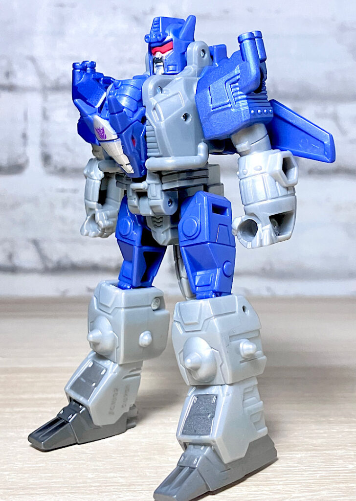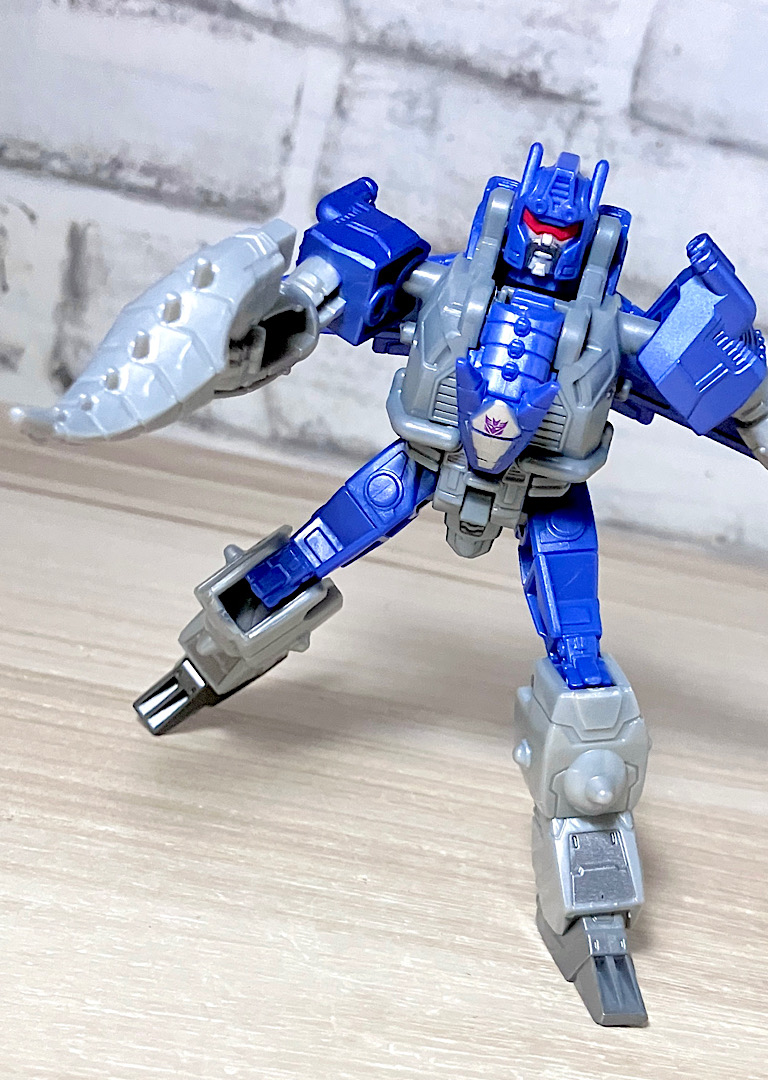 【ロボットモード】ガルバトロンとはいえかなりオリジナリティの高いデザインで、色以外はいわゆるG1ガルバトロン要素はありません。バイザー×ヒゲという組み合わせも珍しいですね。