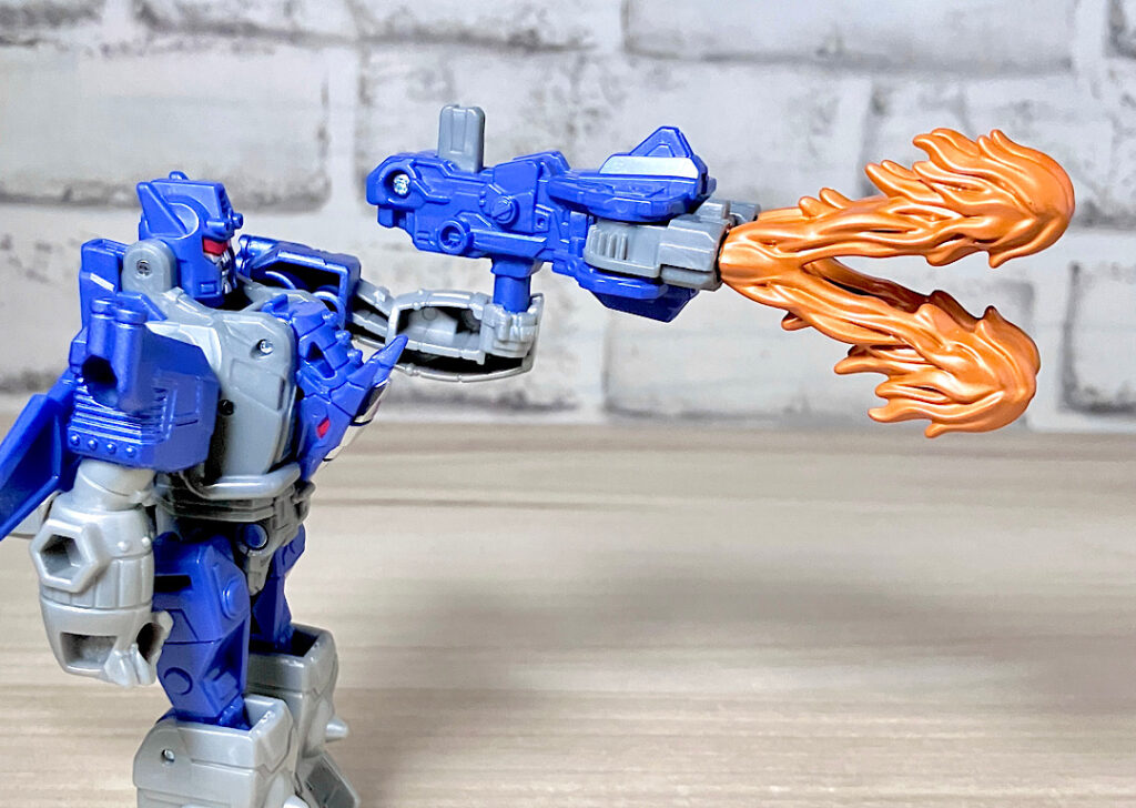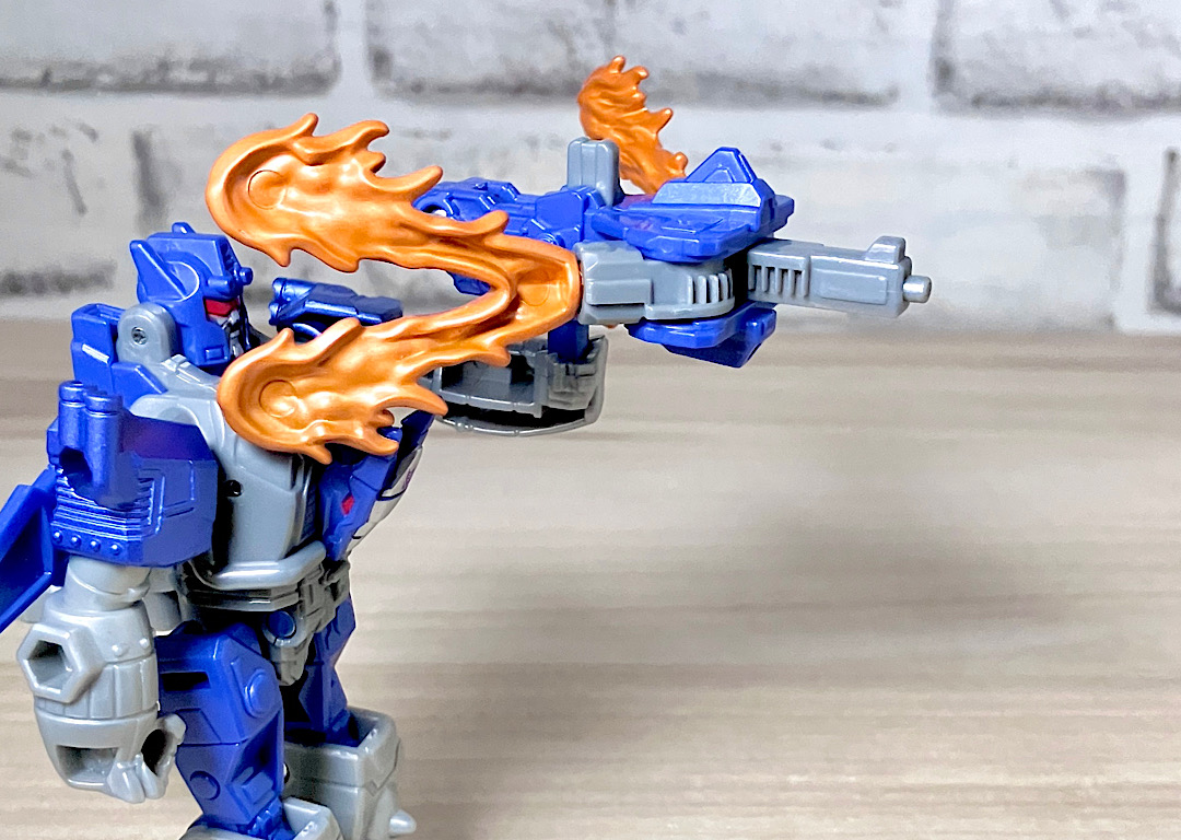 武器は変形可能。ブラスターのスイッチをスライドさせると、銃口が後方を向きます。