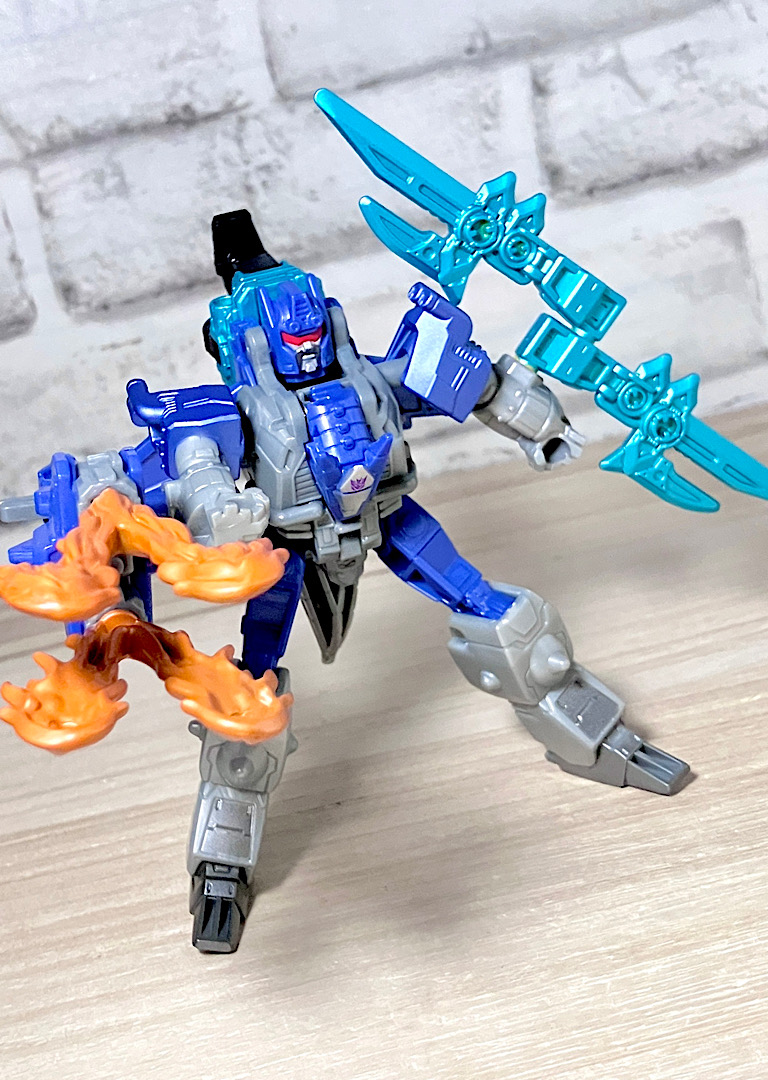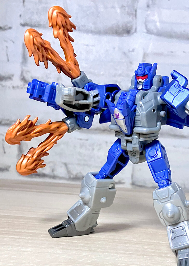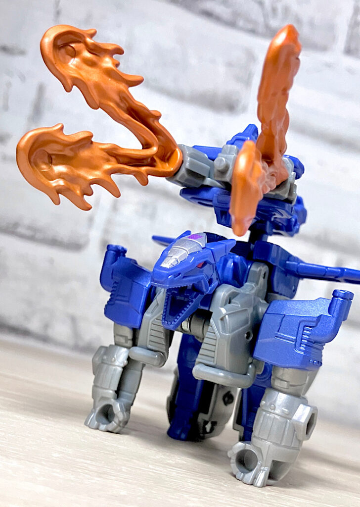 ところでこのガルバトロン、顔のヒゲはG1スカージを彷彿とさせるほか、ドラゴン形態はサイバトロンスカージ(ギャラクシーフォースのフレイムコンボイ)っぽいし、肩の排気筒はビースト覚醒のスカージっぽい…というふうに、様々なユニバースの「スカージ」がモチーフになっているようです。もしかしたらもっと隠れているかもしれません。深い意味があるのか、ただのお遊びなのか?