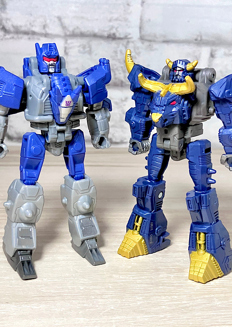 メガトロンと。変形は同じでもパーツの流用は無し。どちらもスラっとして今までのイメージには無いサイバーワールド ならではのデザインなのが良いですね。