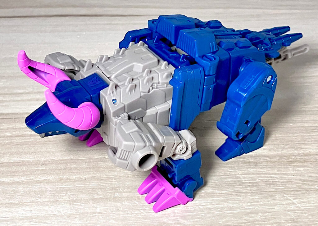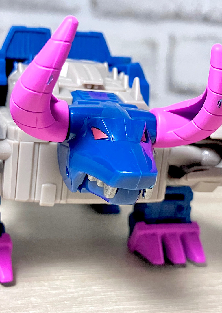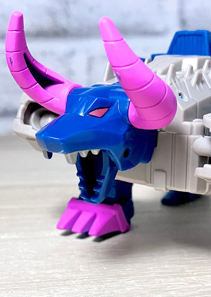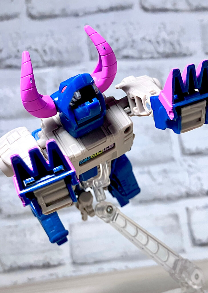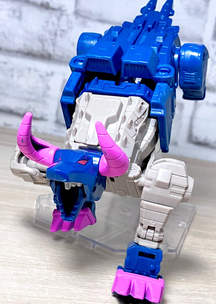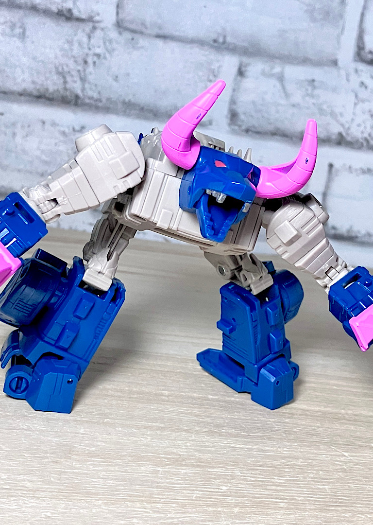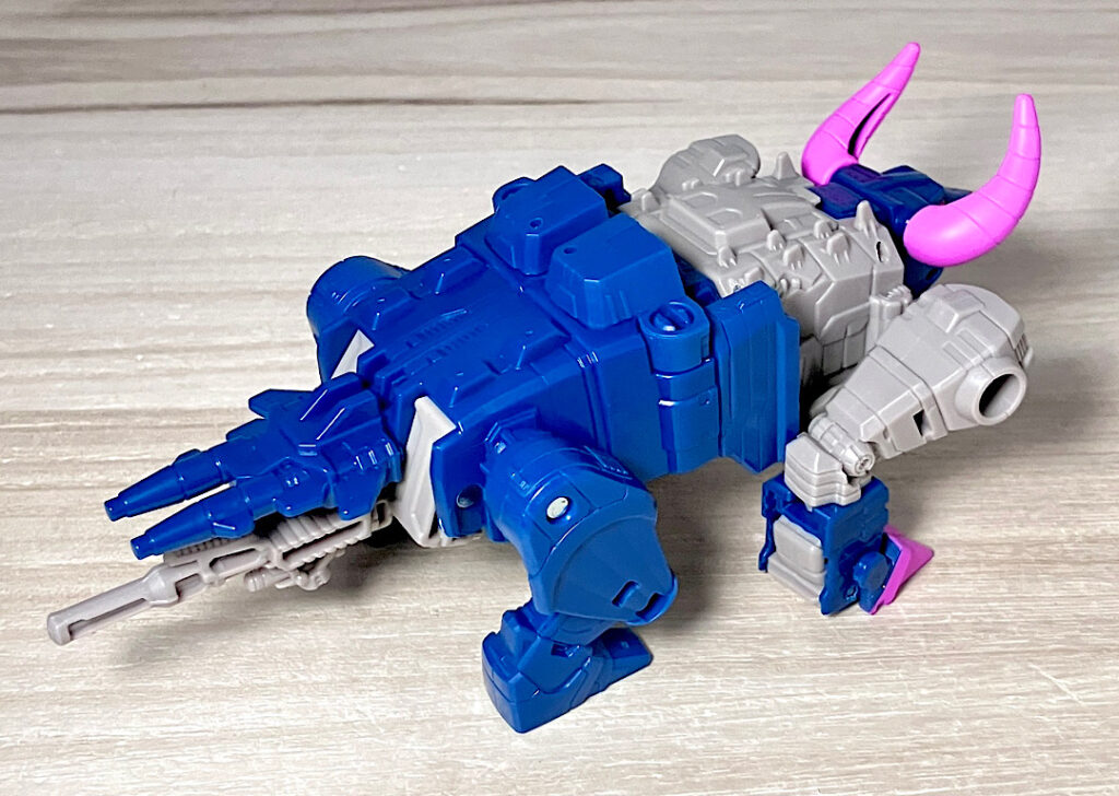 【ビーストモード】メカバッファローに変形。ワニ型からのリデコでここまで牛になってるのはすごい!あと、G1にかなり忠実なリメイクになっています。
