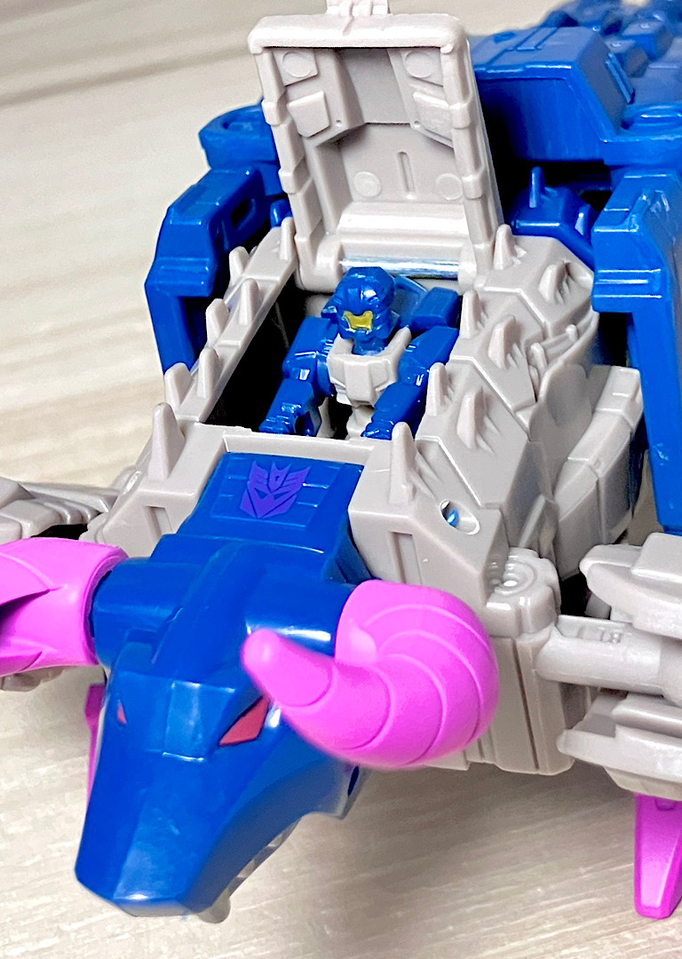 つるんとしてモールドも少なく、悪く言うと安っぽいヘッド。これもG1トイ準拠です。どこかしらゴーストバスターズに出てくるズールっぽさもあり。口は開閉が可能です。