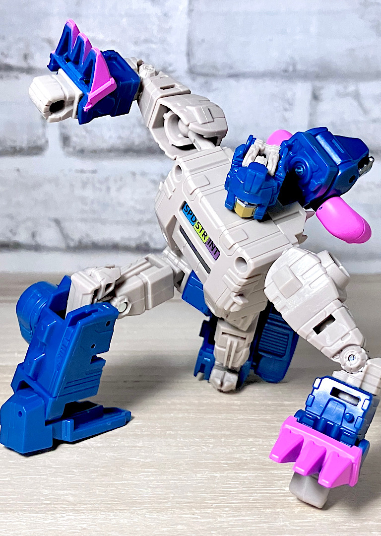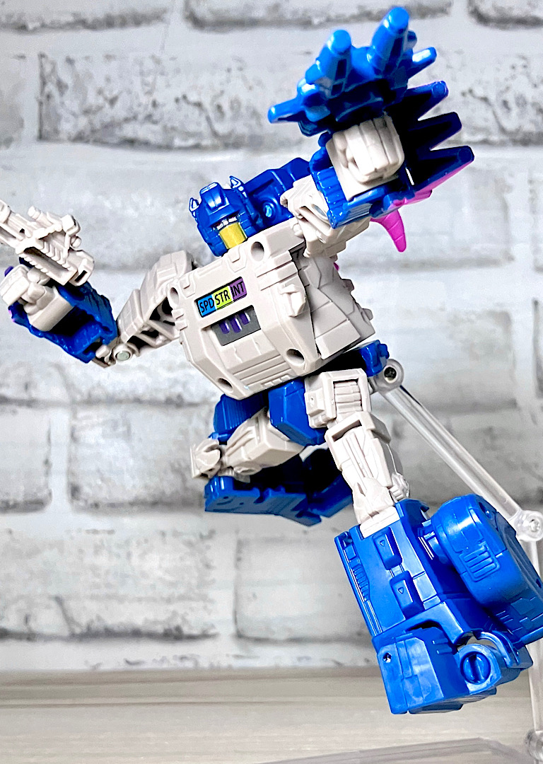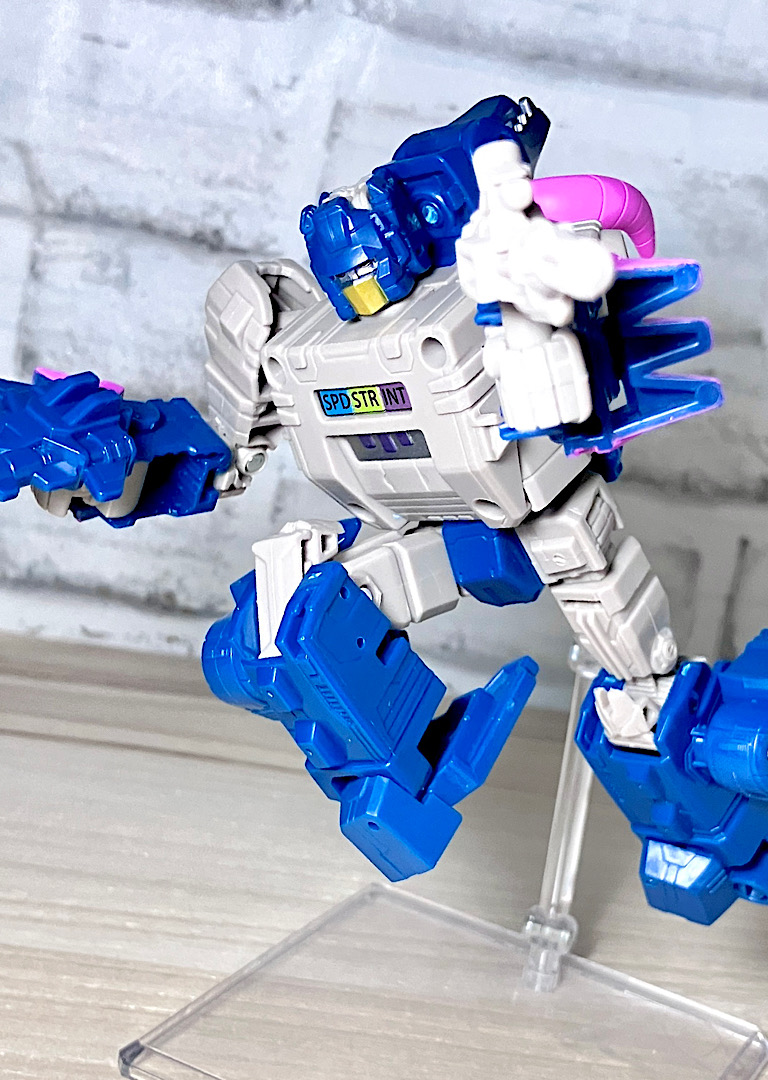 【可動】レガシーユナイテッドのメインアイテムのひとつだったということで、可動も優秀。メリハリの効いたカートゥーン体型でグリグリ動きます。なお日本版オプティマスにあった例の組み間違いはありませんでした。