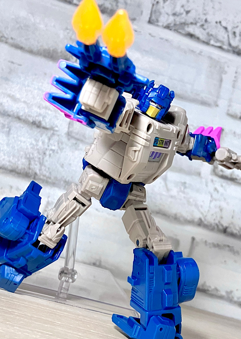 【可動】元はTR期のアイテムなのですが、リデコで足首可動が追加されて近年の標準に近づけています。そしてこの足首リデコは「かかと」も兼ねているのが地味にすごいところ(スカルクランチャーは後ろに倒れやすかったのです)。