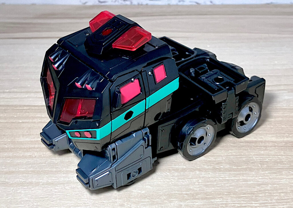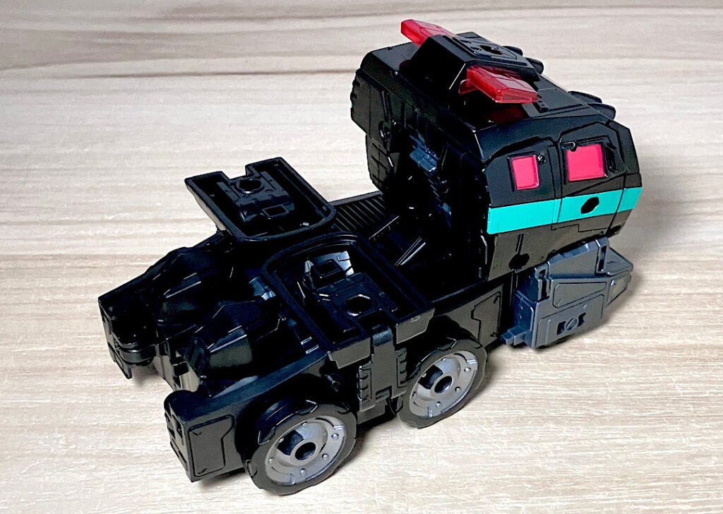 【ビークルモード】一応消防車のキャブということになっています。ただの6面体ではない独特の多面構造が美しいビークルです。