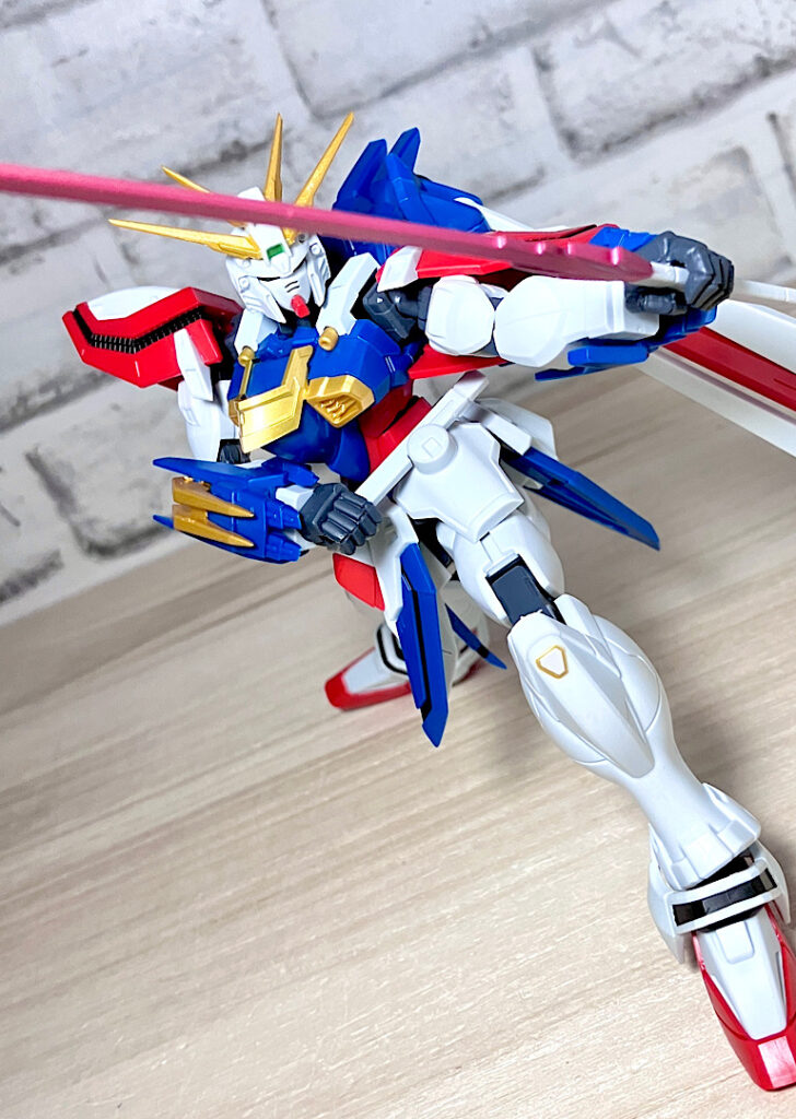 【可動】新型フレームにより素体はグリグリ動きます。ただ、バーニングは腰回りの装飾が多くて、動かすと干渉する上にパネルのポロリが頻発。なおポロリしやすいのは破損防止のためでもあるんでしょう。
