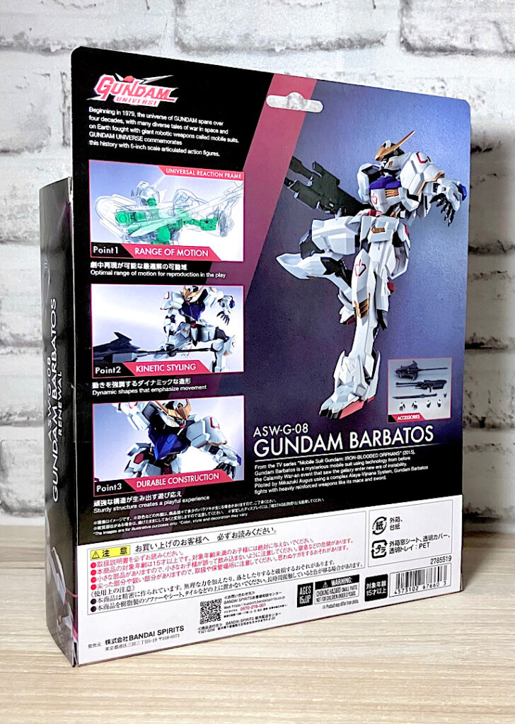 【パッケージ】ガンダムユニバースはワールドワイド展開を狙い、アメトイで標準的な6インチサイズ+過度なギミックやアクセサリを抑制した比較的低価格なコレクションライン。内部フレームを一新したリニューアルスタートWAVE2には、海外でも人気のガンダムバルバトスがラインナップ!