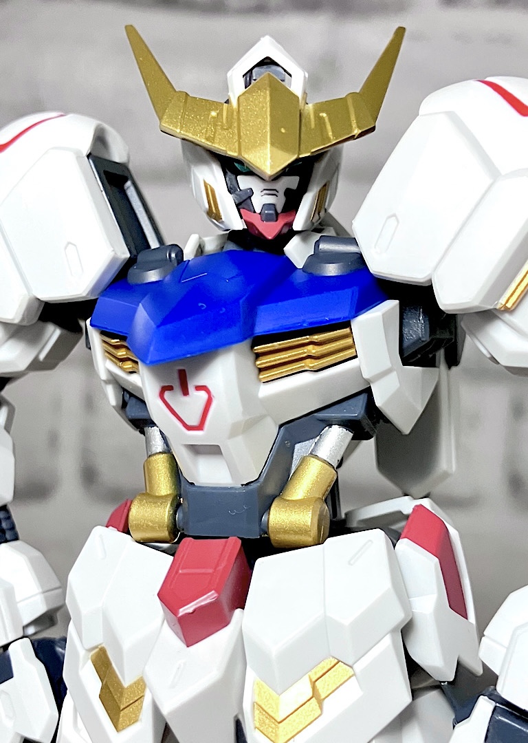【アップ】複雑めなデザインの頭部もバッチリ再現。バルバトスのアンテナは大きめなので、破損の心配はやや低めかな。