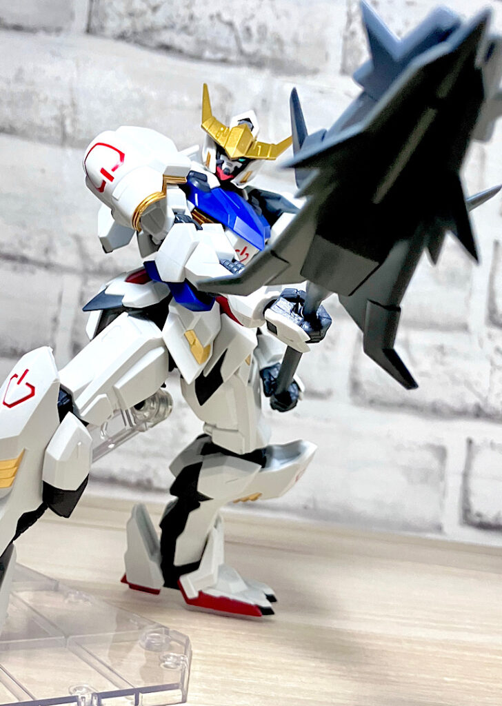【フロント&リア】「鉄血のオルフェンズ」の主人公機であるガンダムフレーム。お安めの価格帯に関わらず、造形は良好。バルバトスのスッキリした無骨なシルエットがシャープに再現されています。