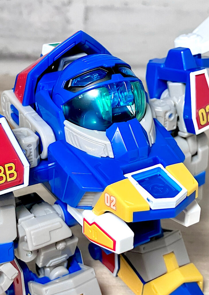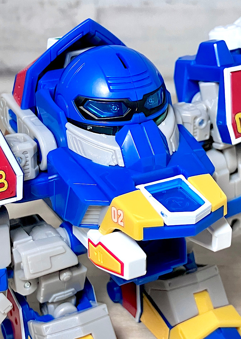 【アップ】ブルーブレイバーはバイザーが大きくビーダカプセルに被さっているため、顔はほとんど見えません。