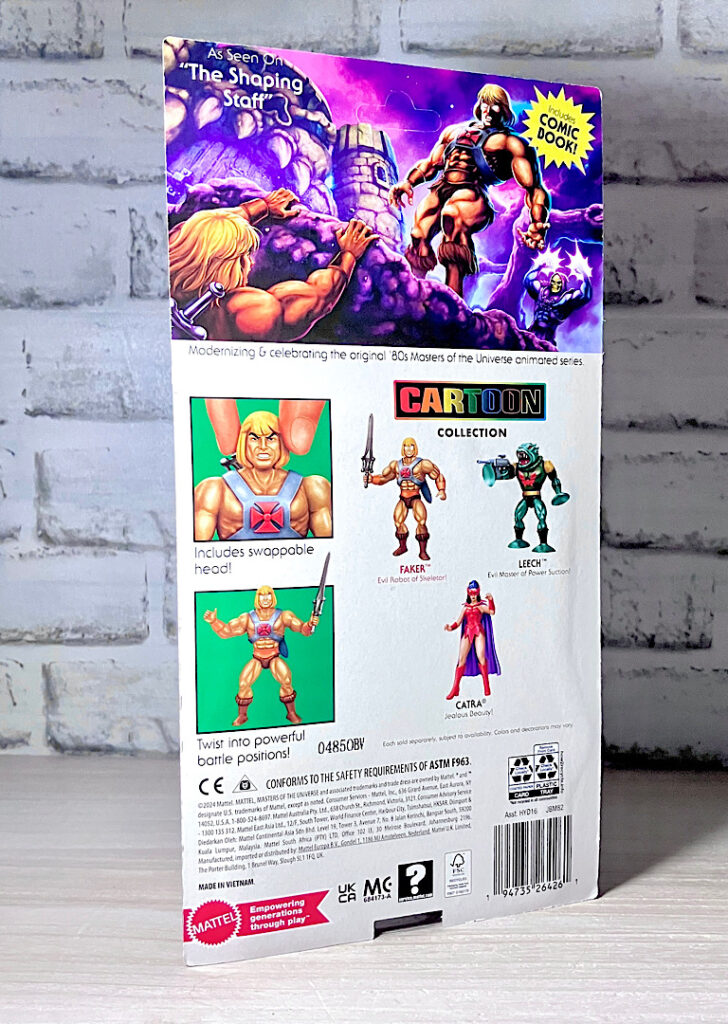 【パッケージ】2024年から始まった新展開「カートゥーンコレクション(以下CC)」。80年代フィルメーション社のアニメに取材したシリーズで、ビンテージトイではなくアニメの見た目に近づけた造形が特徴です。TFのスタジオ86シリーズみたいなものですね。パッケージのカラフルな「CARTOON」は、フィルメーションのロゴをもじったものですが、コレが最高にクール!