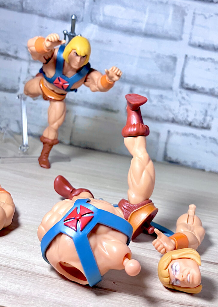 替えてしまうと、もはやヒーマンと何ら変わらないフィギュアになってしまいます。ていうかもしかしたらこのヘッドはヒーマンとしても遊べるよという再販的な意味なのかもしれません。