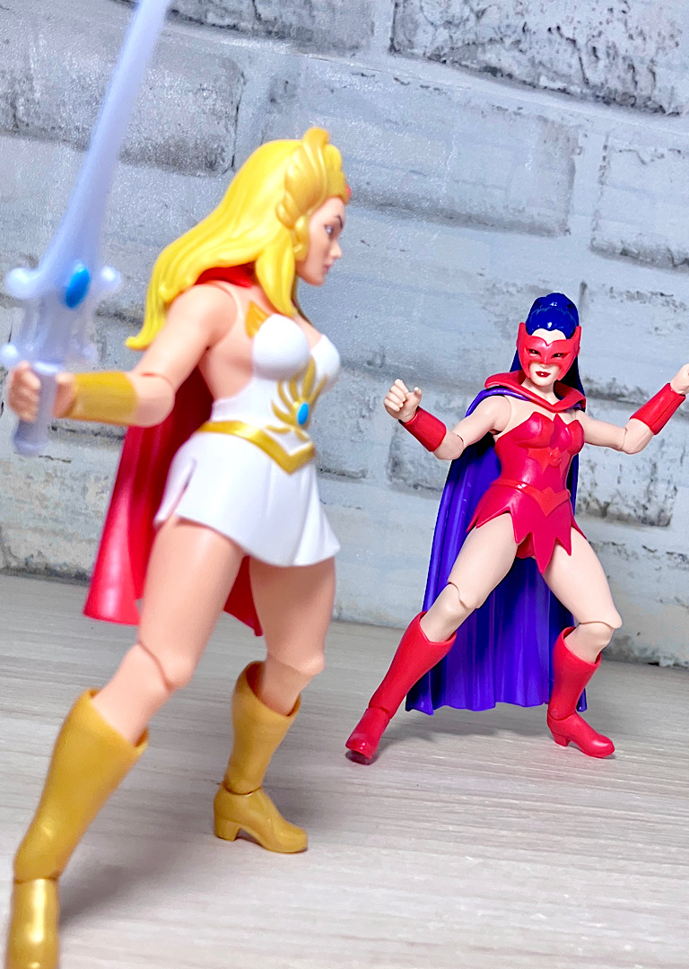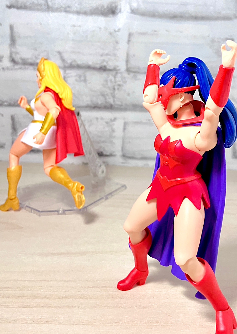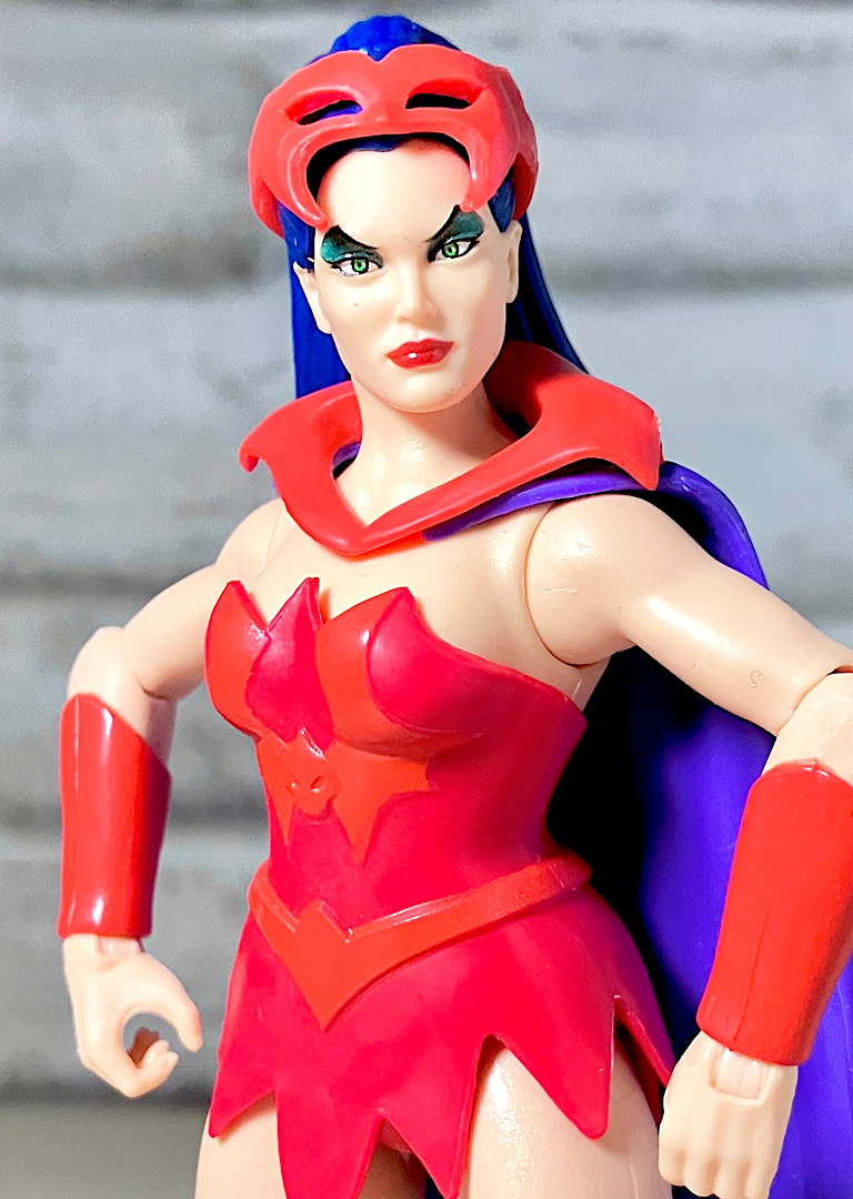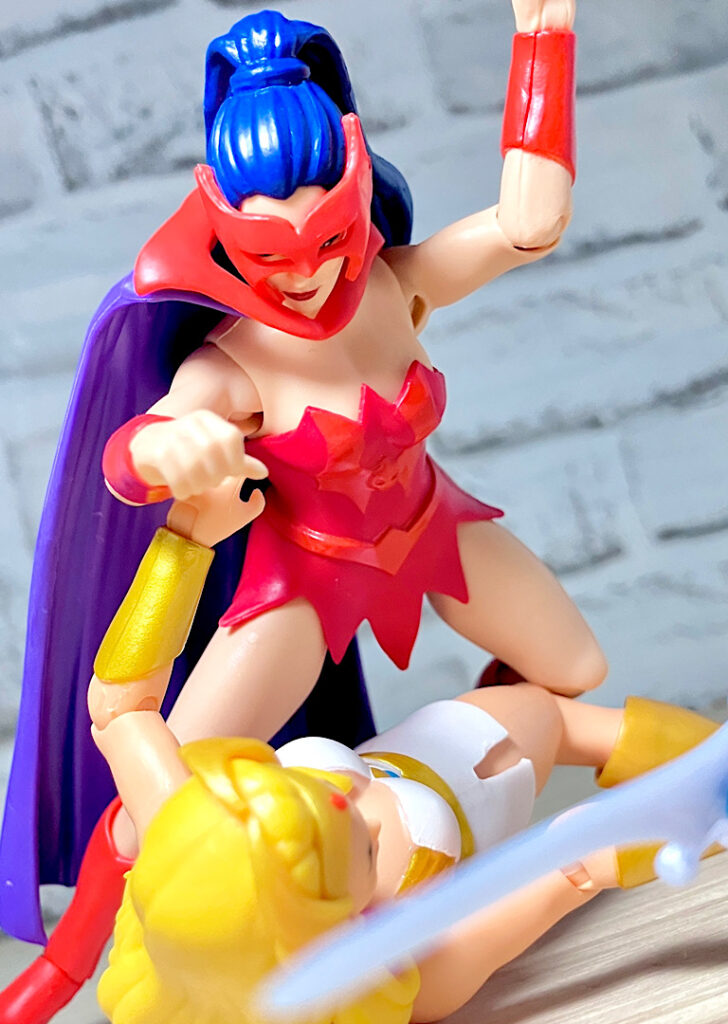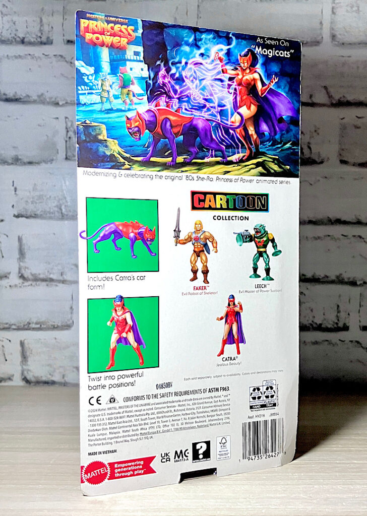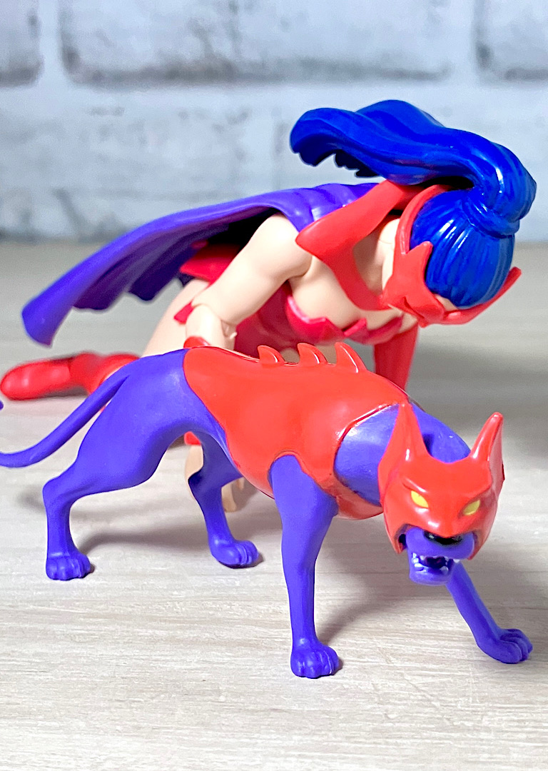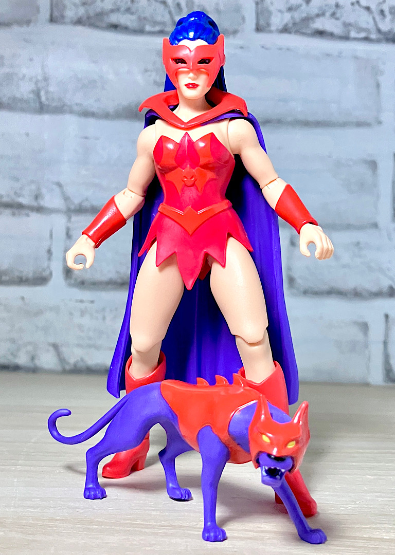 【フロント&リア】エビルホードの女ヴィランでネコがモチーフ。シーラの直接のライバルともいえる存在で、登場話数もかなり多めです。ビンテージ展開ではシーラと同じ女児向けのドール人形でしたが、この度めでたくオリジナルフォーマットで商品化されました。細めの女性素体にマント姿で、当然ながらアニメから飛び出してきたようなスタイルです。
