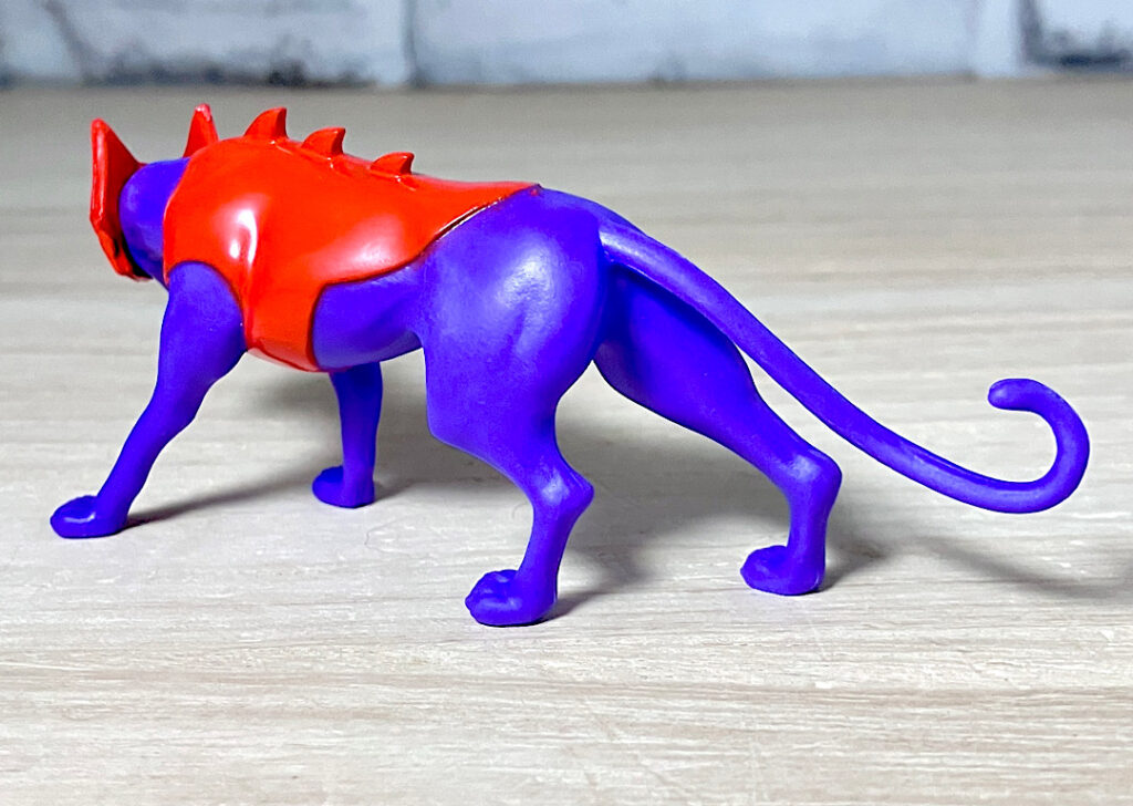 サイズはちょうどキャトラが変身したくらいの同スケール。なお海外の解説サイトだと”purple panther”と言われており、ただのネコというよりは大型のネコ科ビーストというイメージのようです。