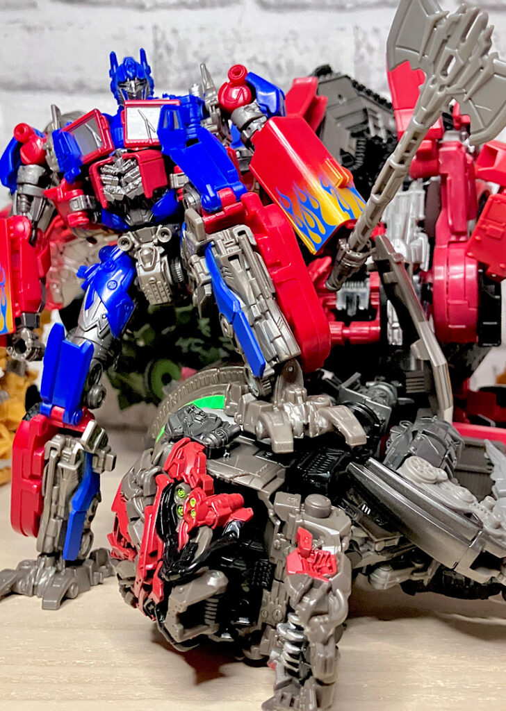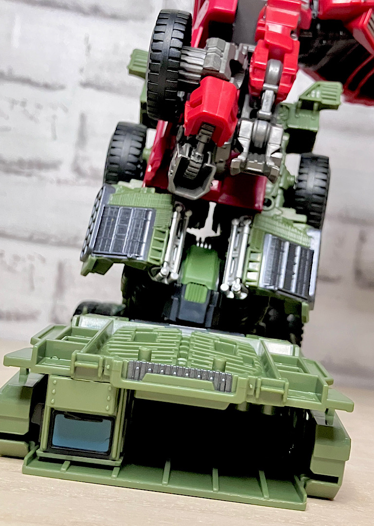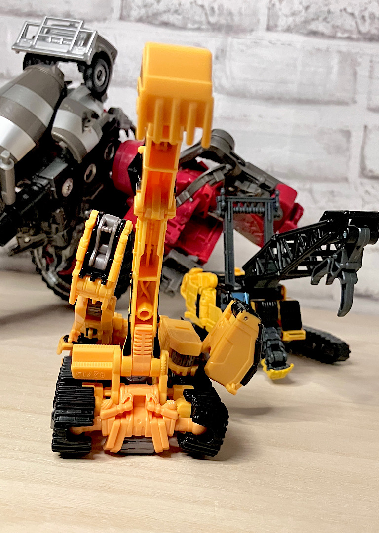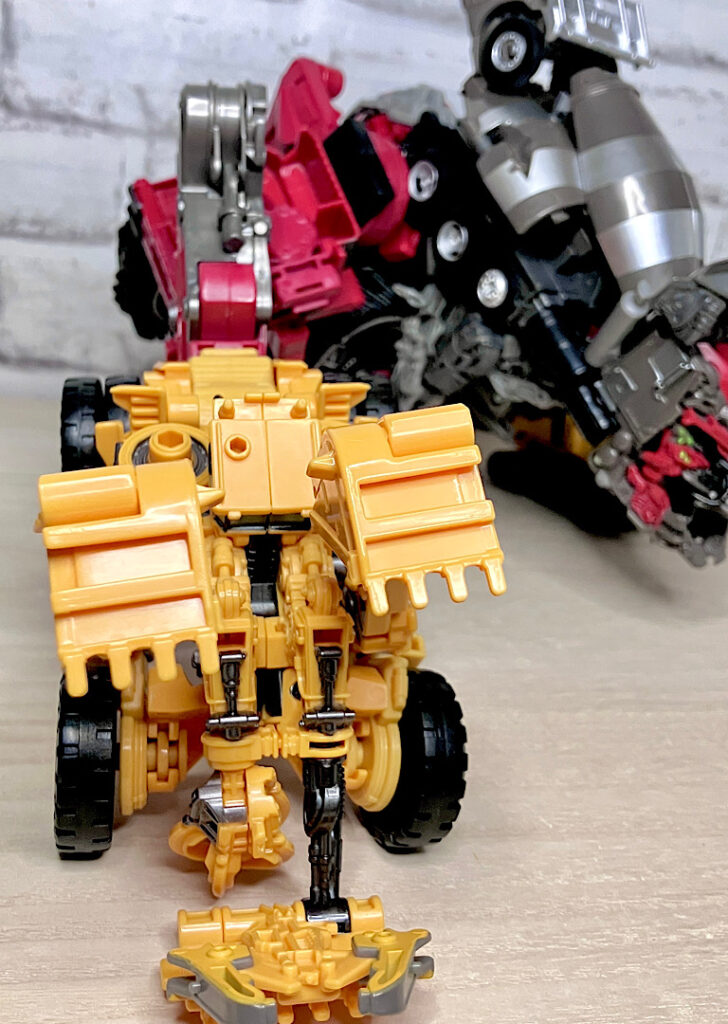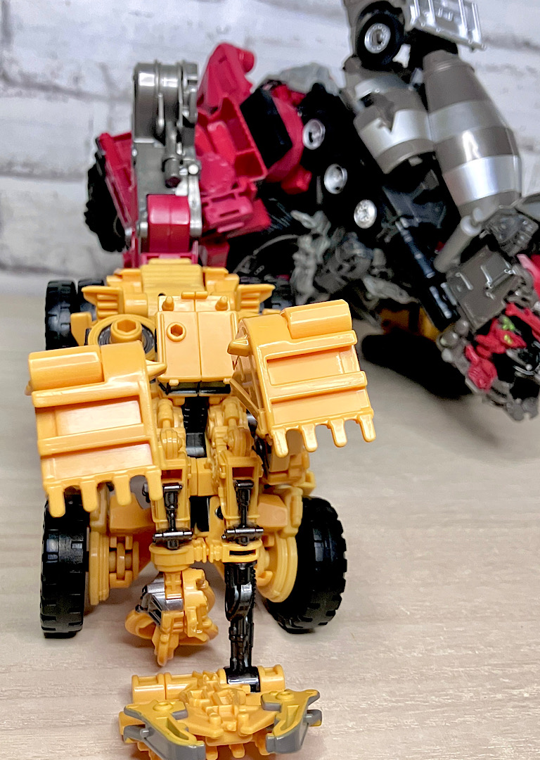 直立だと違和感のあるデバステーター。上半身を前屈みに倒し、ミックスマスターの変形を崩して前を向けてやると、グッとそれっぽくなります。これだよこれ!