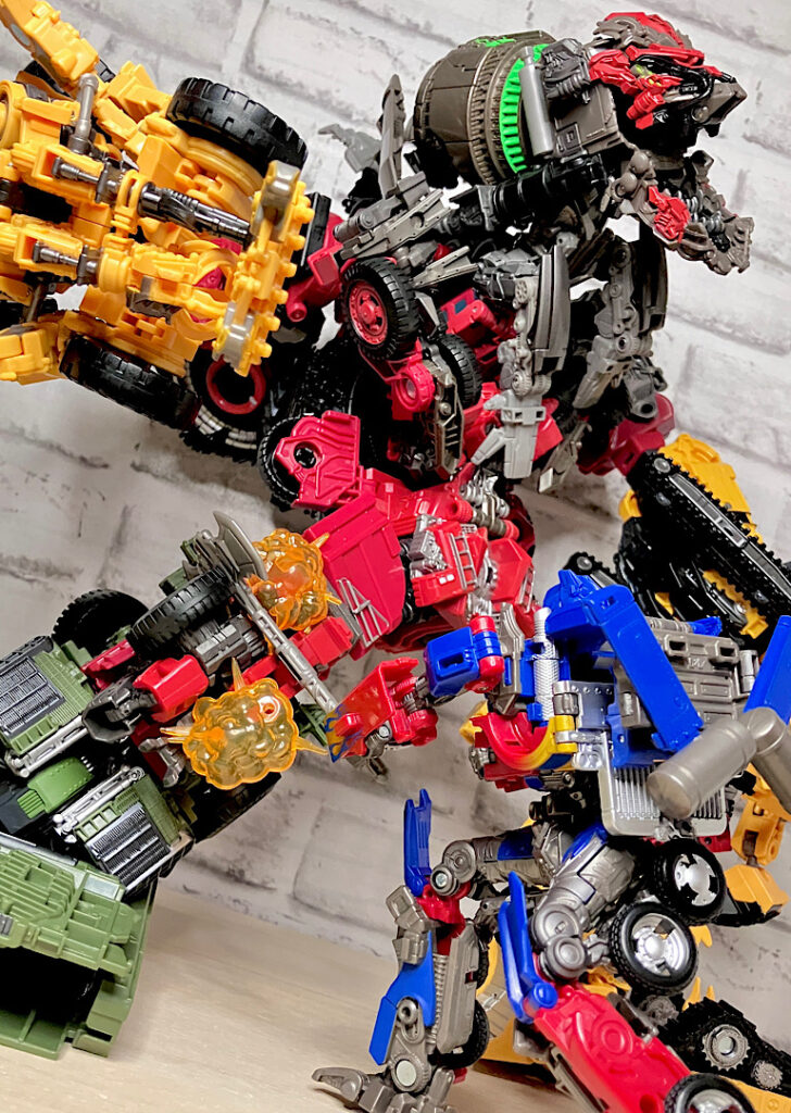 なお実写デバステーターの構成員には未確認の建機も混ざっていたりしてはっきりしない要素も多いのですが、SS版は8体が合体するという解釈での商品化となりました。