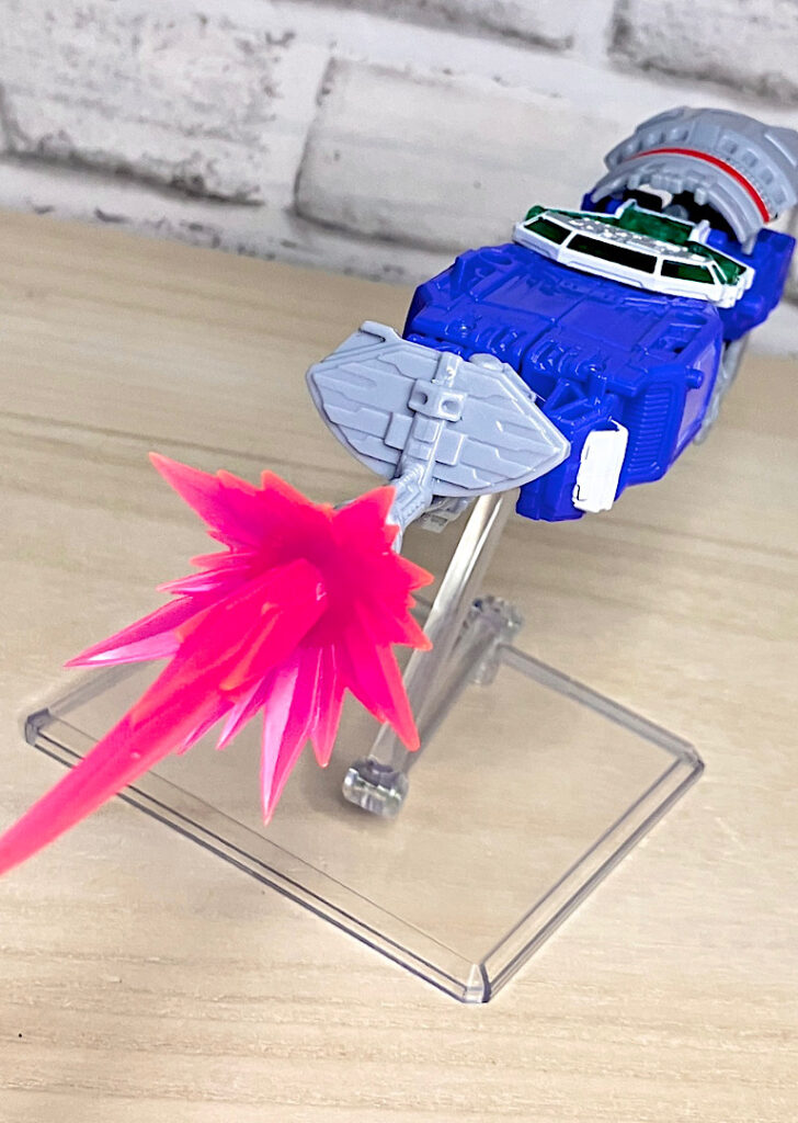 これがスペースシップだとして、どんなサイズ感を想定してるんだという疑問が出てきますね。また武器として他のTFに持たせるのもひとつの使い道。