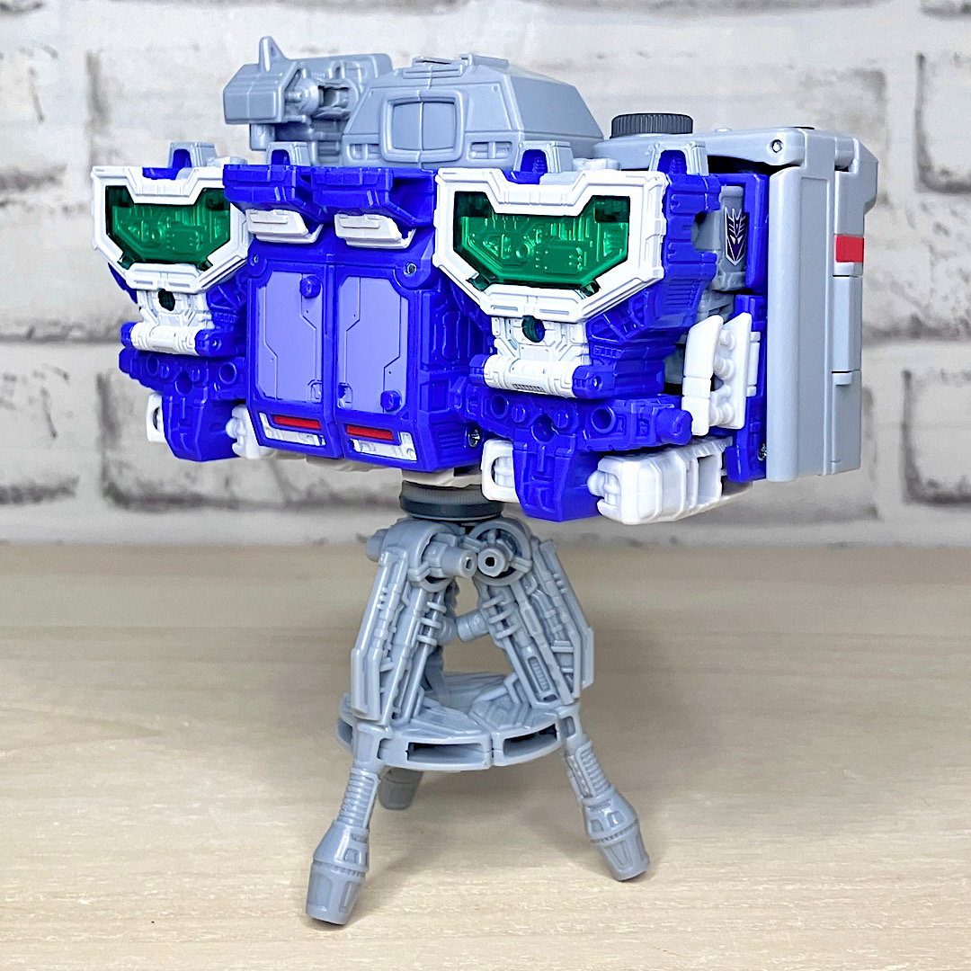 【ビークルモード】謎スペースシップに変形。後述しますがリフレクターは3体そろってカメラに変形するのが往年のモチーフなのですが、1体だけでも遊べるようにシージ版で新たに設定されたビークルです。とはいえほぼ見立てのようなものですが…。