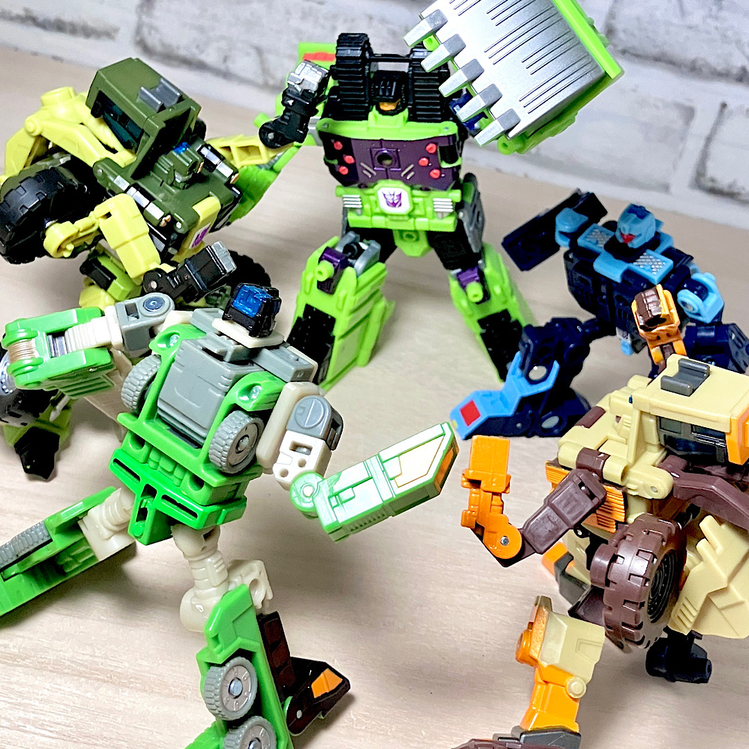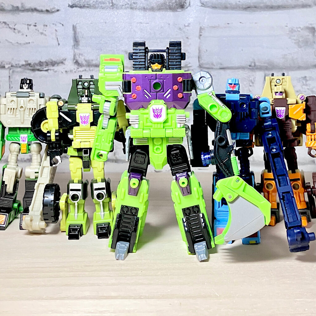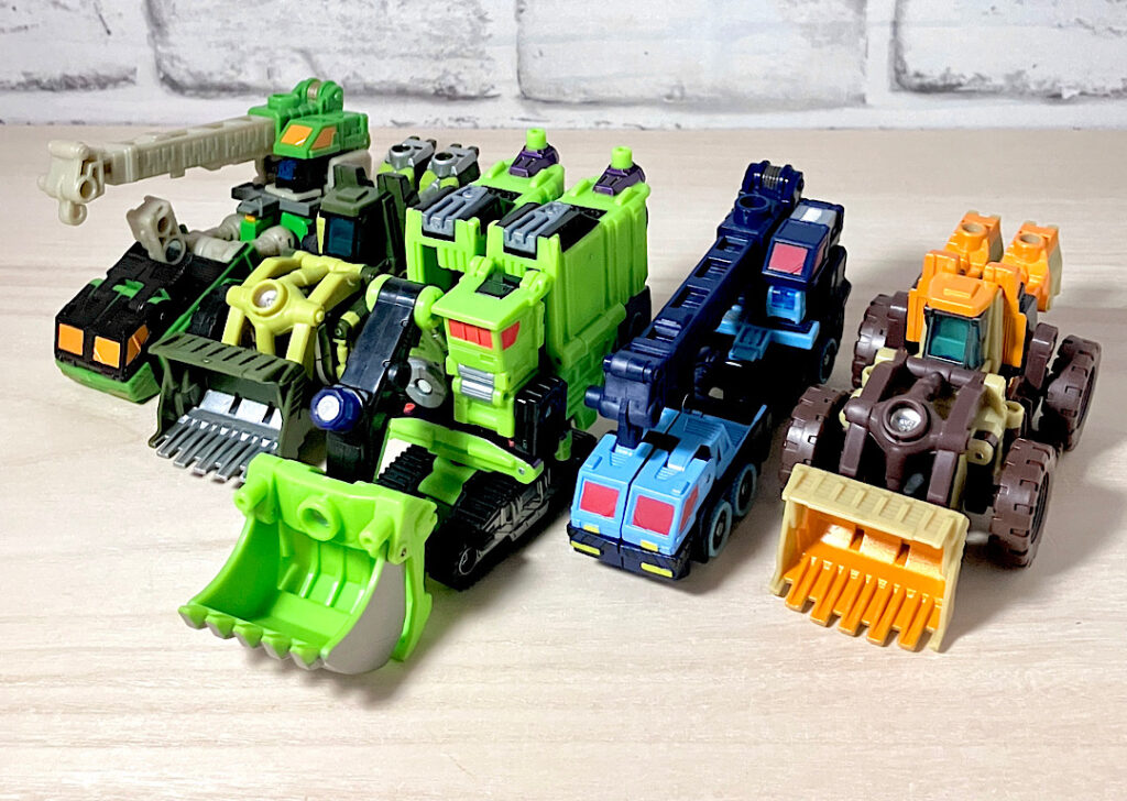 ユニクロン(マイクロン)三部作の真ん中「スーパーリンク(ENERGON)」に登場した5体合体戦士の1人がビルドロン。本当なら「デバスター」がピッタリなんですが、この名前は前作マイクロン伝説の1キャラに使ってしまったので、G1チーム名だった「ビルドロン」を持ってきたと思われます。もっとも、海外名が「コンストラクティコン・マキシマス」なので翻訳としては悪くなかったりするんですけどね。海外では5体バラバラに一般商品として、国内では5パック商品としてトイザらス限定で販売されました。