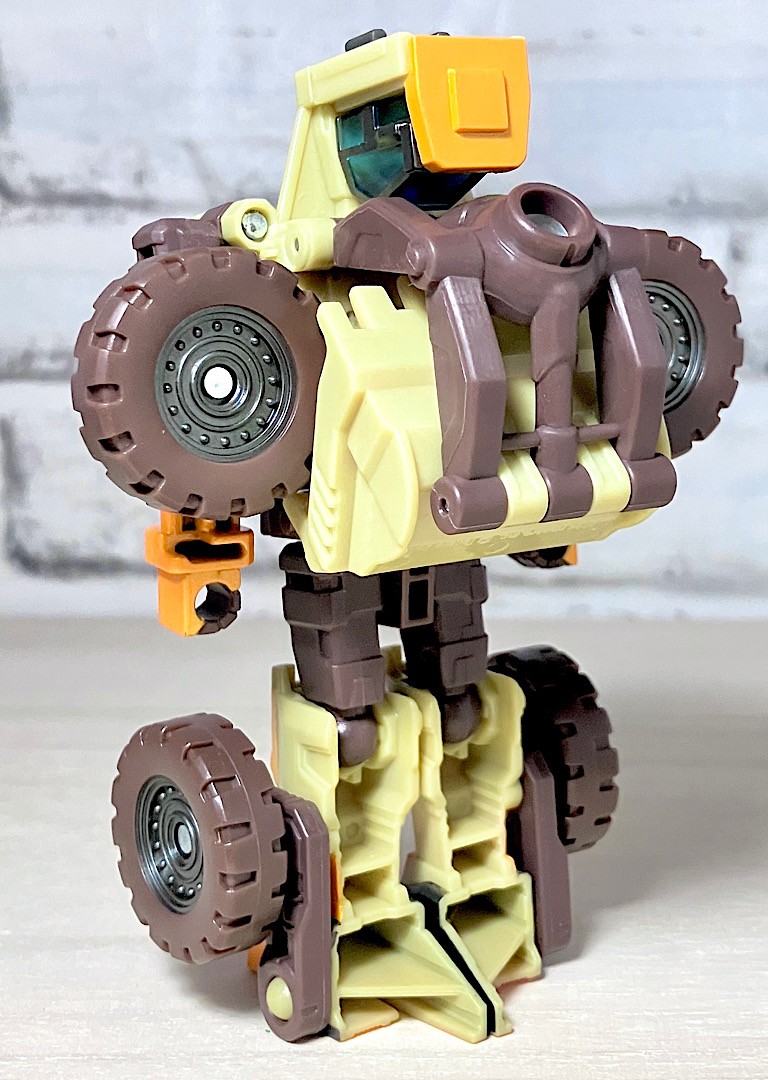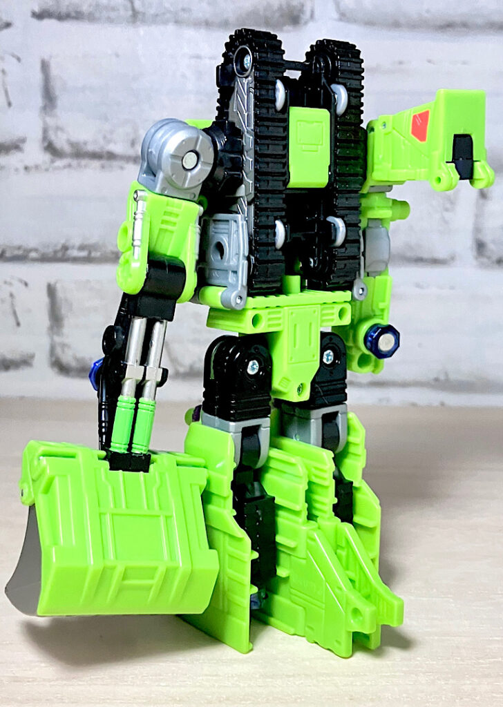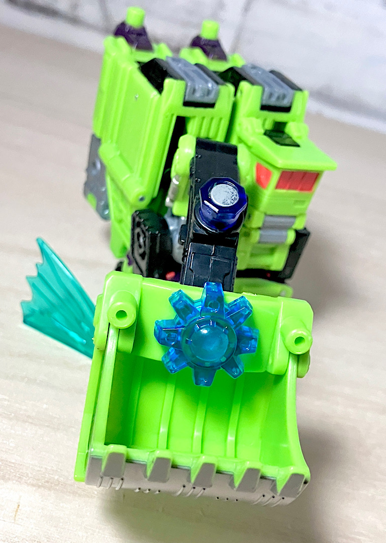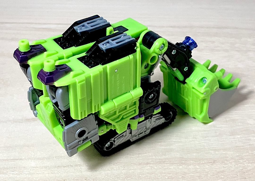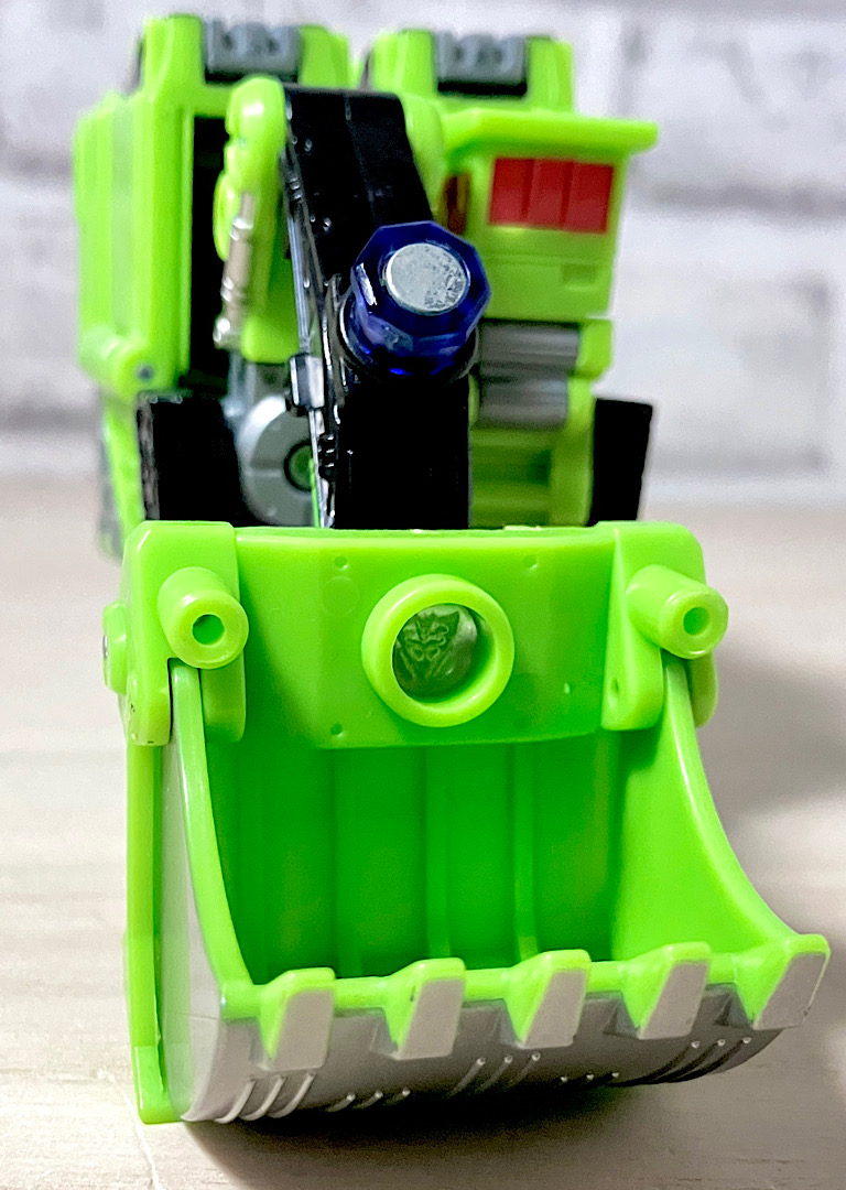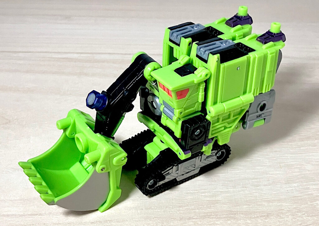 【ロボットモード】チームのコアとなるリーダー。キャタピラをバックパックのように背負い、片手がバケットになっているというなかなか攻めたデザインです。