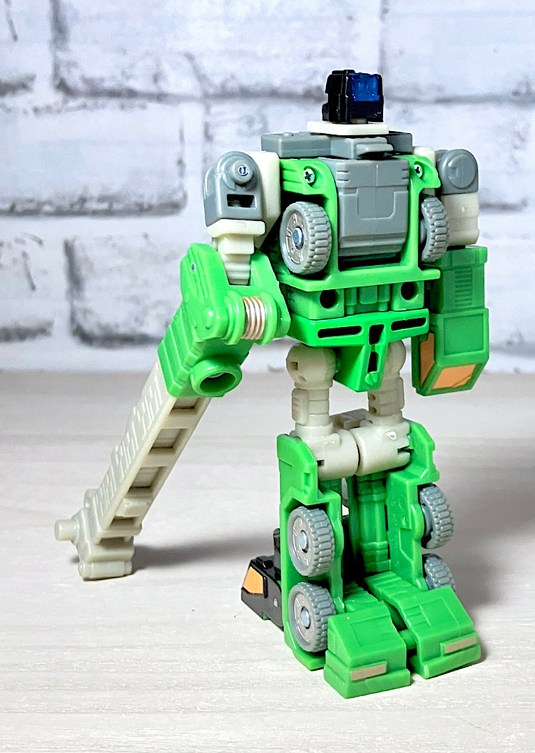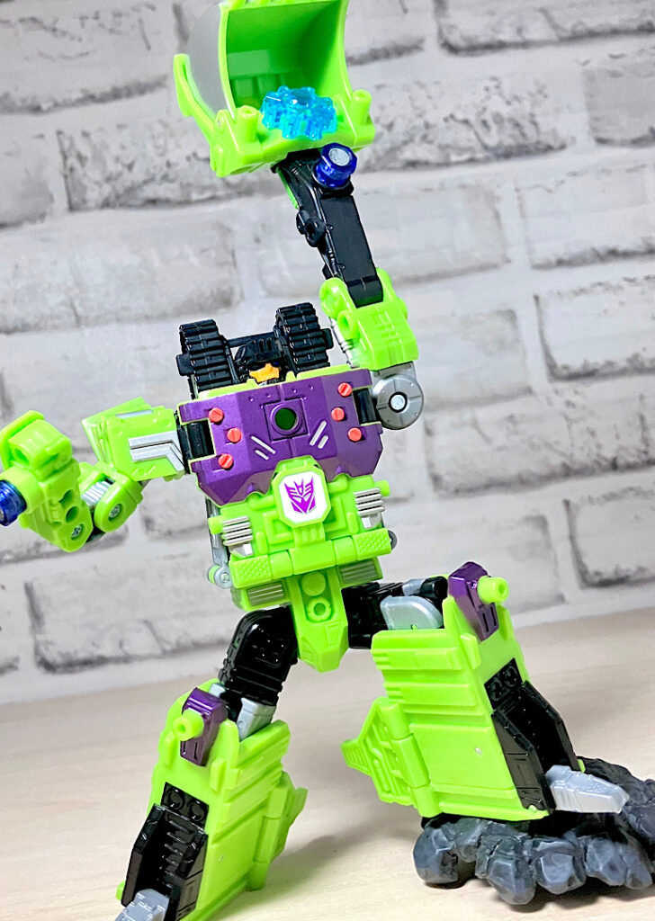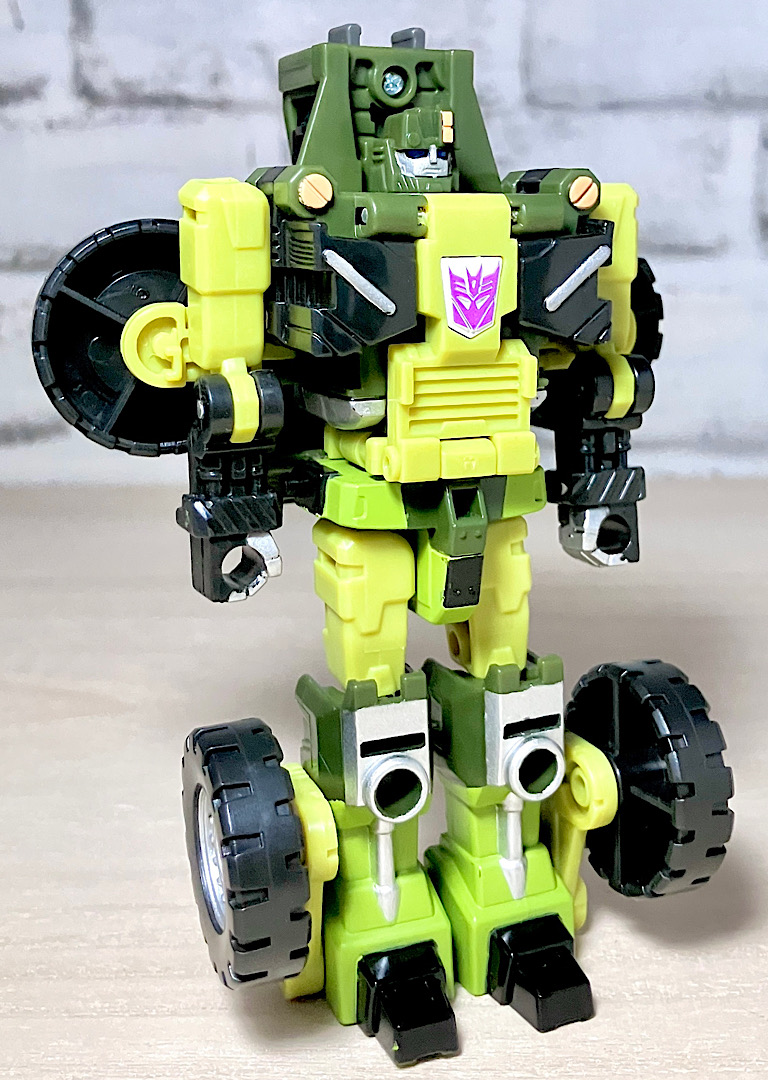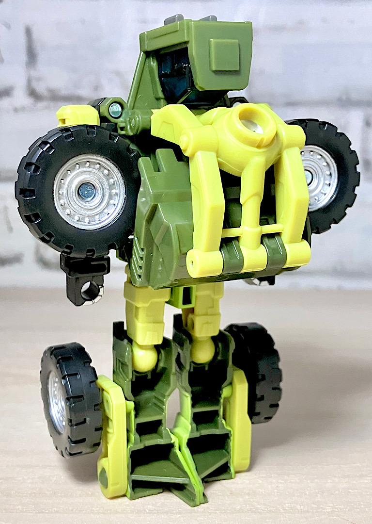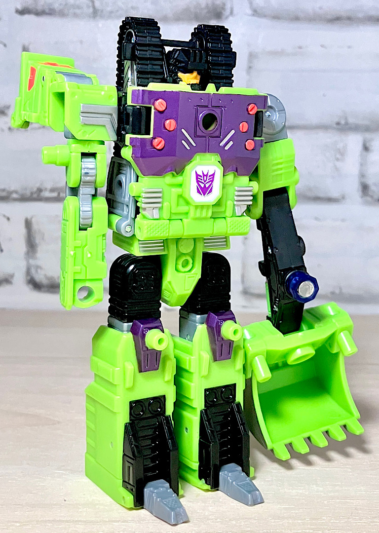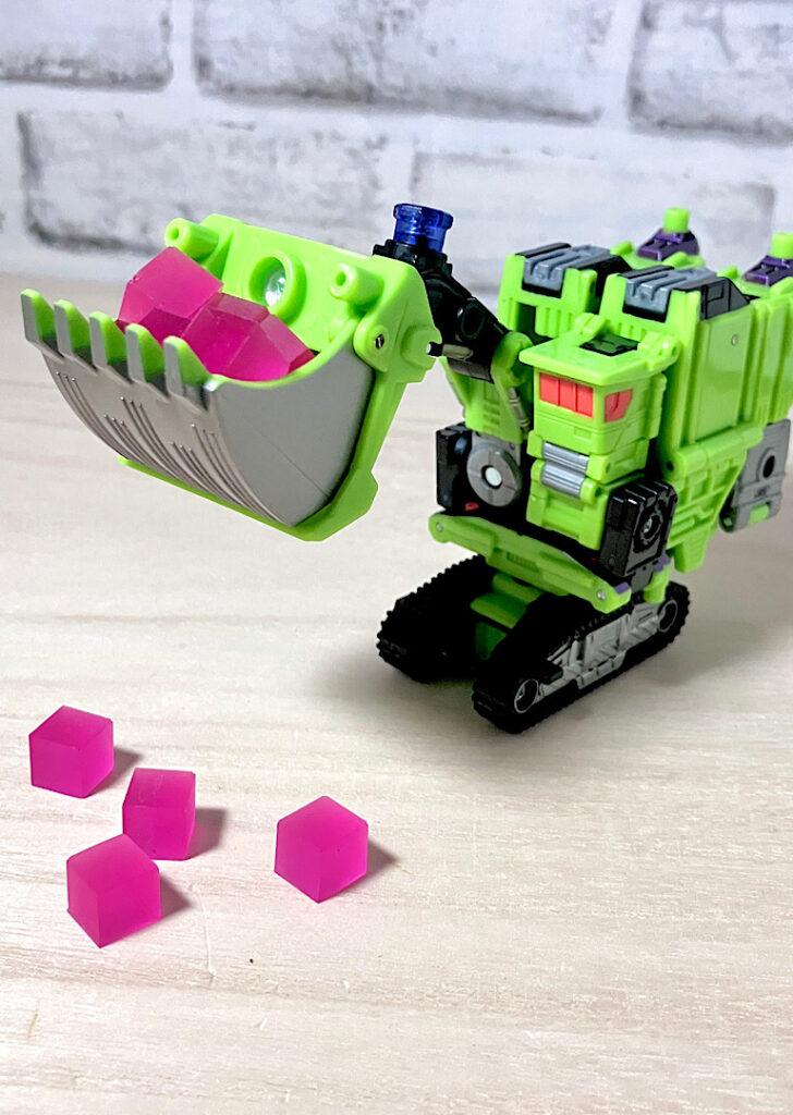 【ロボットモード】チームのコアとなるリーダー。キャタピラをバックパックのように背負い、片手がバケットになっているというなかなか攻めたデザインです。