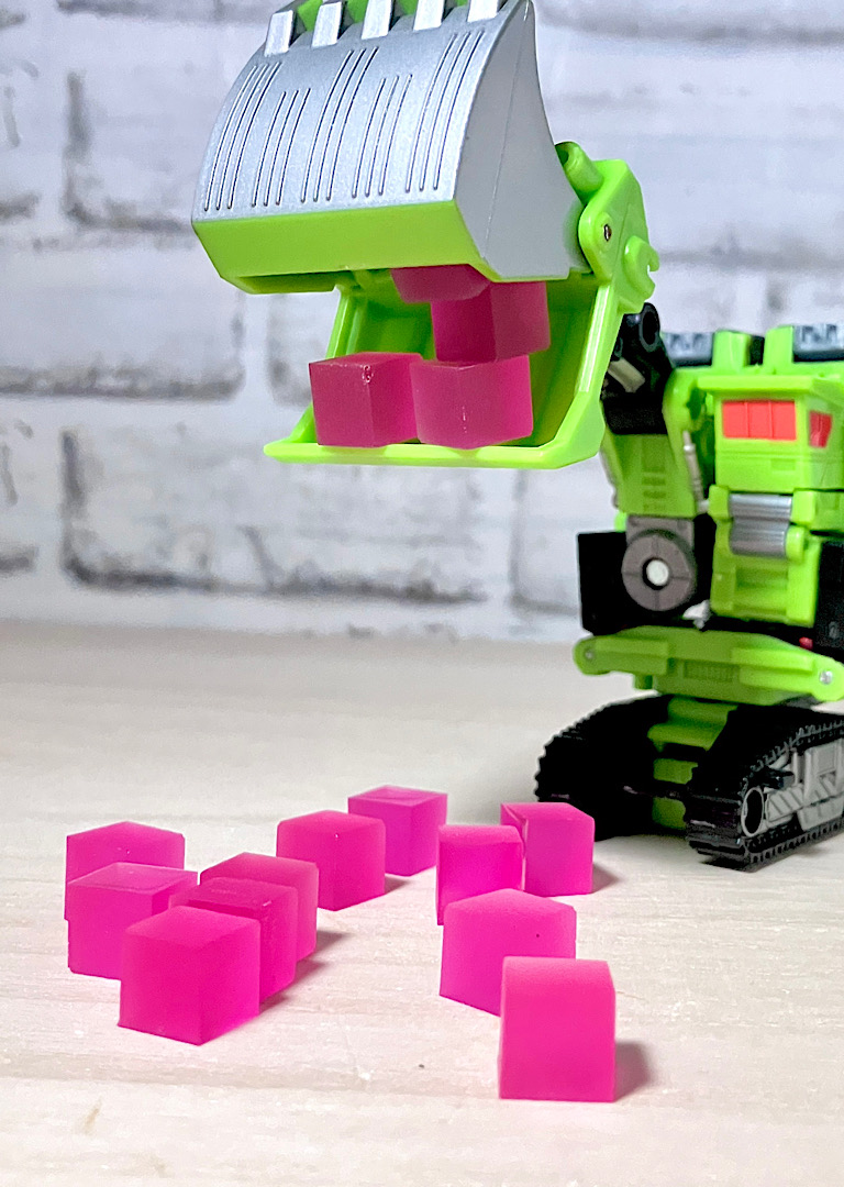 【ビークルモード】採掘型ショベルカーに変形。デフォルメの効いたちょっとキュートなスタイルです。