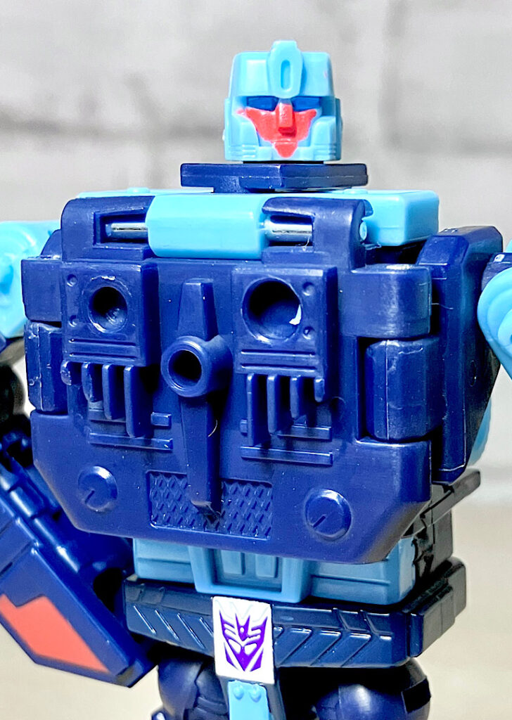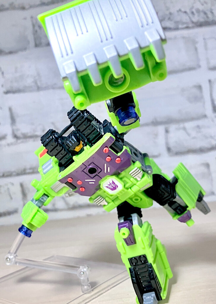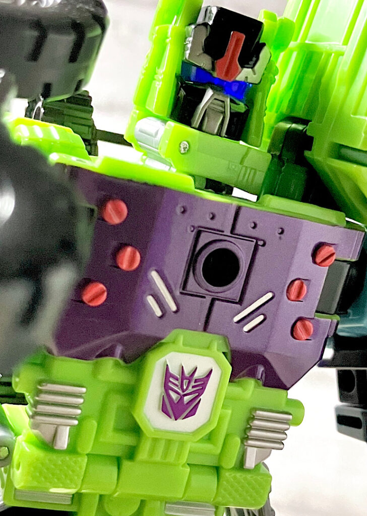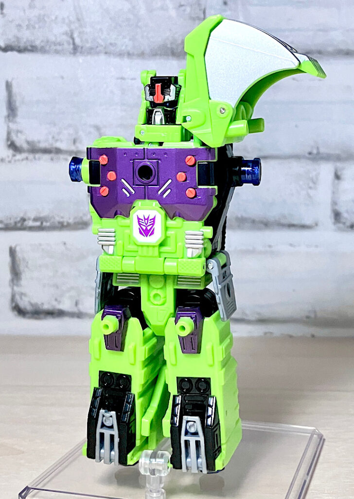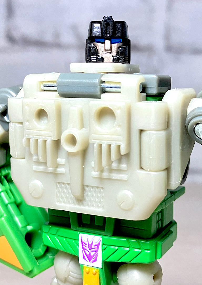 【アップ】キャラとしてはG1デバステーターを意識していますが、頭部デザインは全く異なるガスマスク系。同じスパリン合体戦士のブルーティカスに合わせたデザインなのかもしれません。