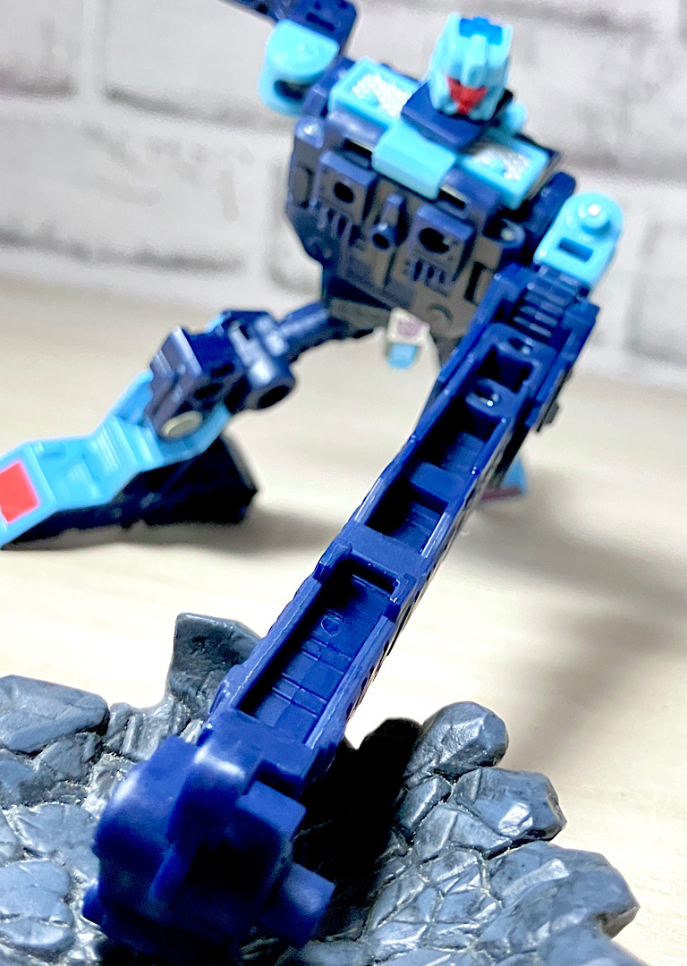 【合体モード】腕または脚に変形。エネルゴンウェポンが拳やゲタパーツになるわけです。